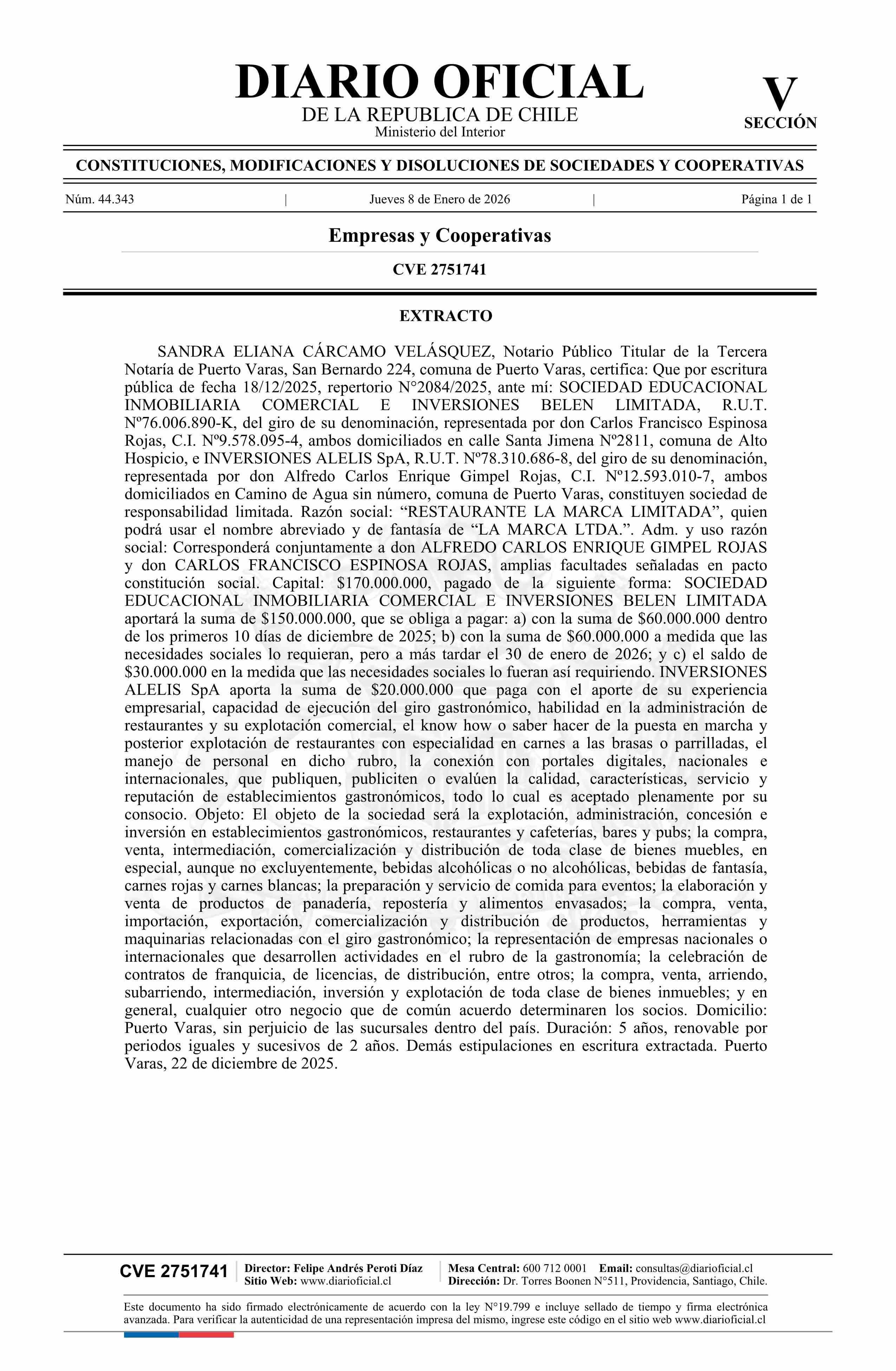 RESTAURANTE LA MARCA LIMITADA 08-01-2026 Diario Oficial Edición Electrónica |