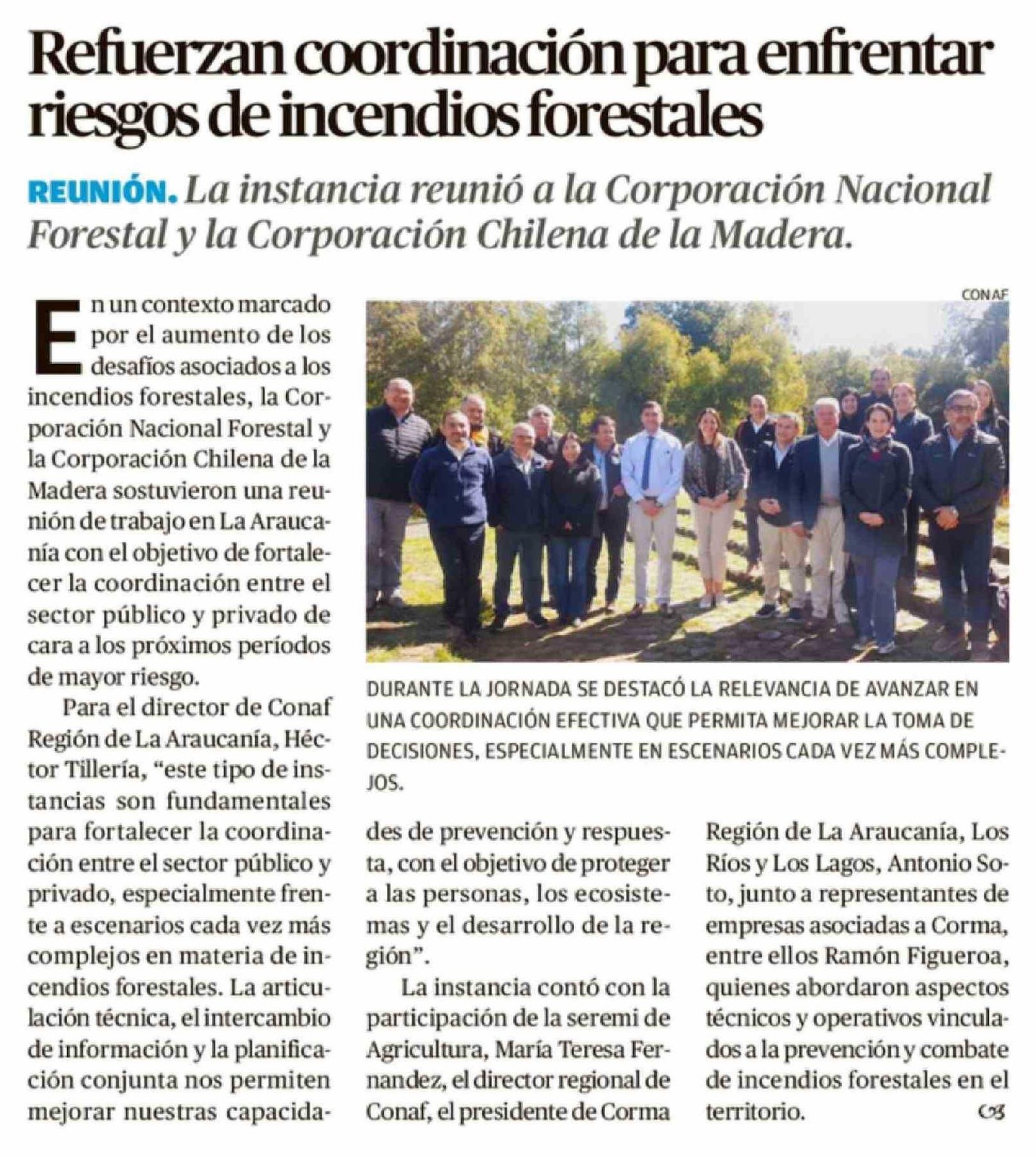 Refuerzan coordinación para enfrentar riesgos de incendios forestales 09-04-2026 El Austral de la Araucanía |