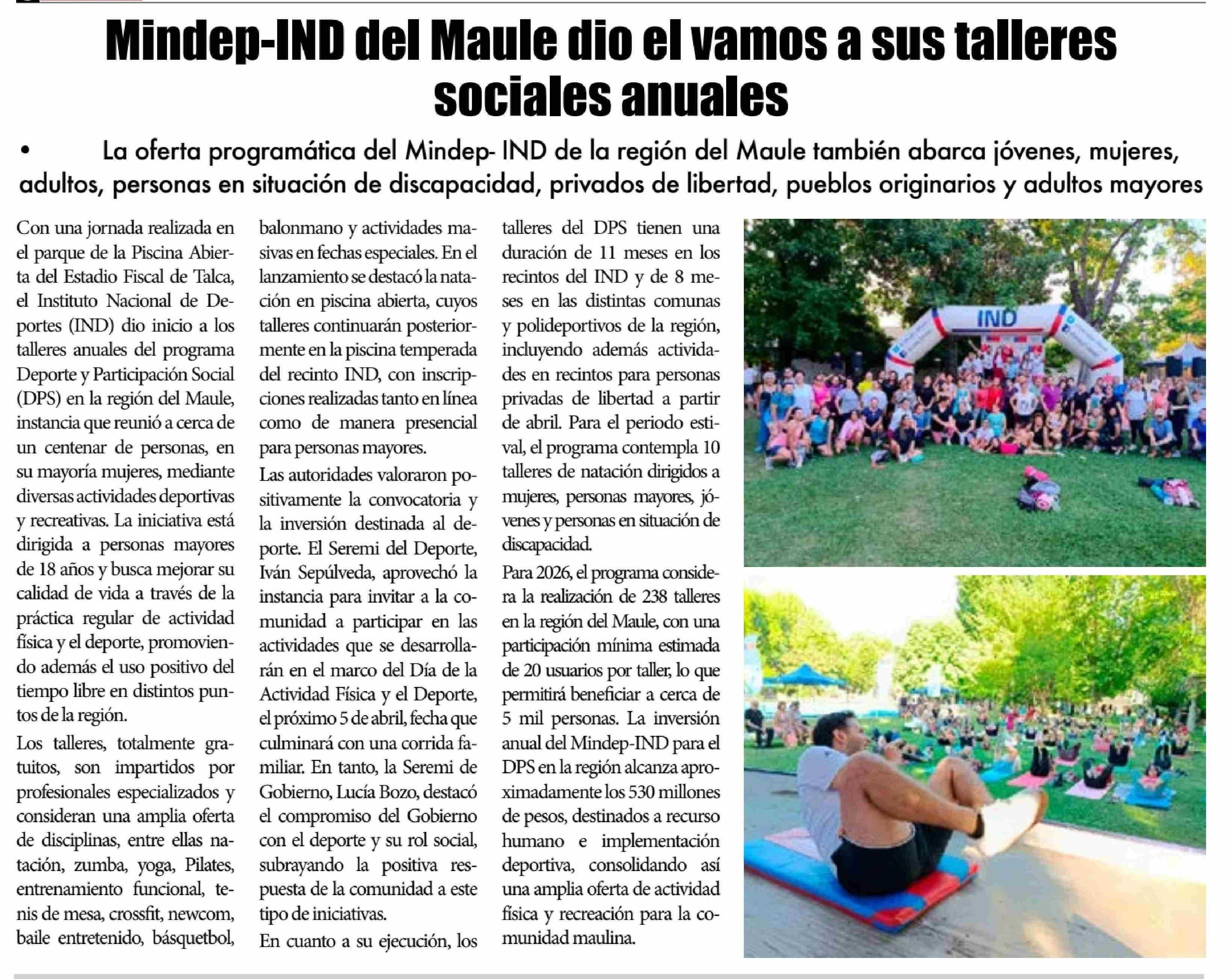 | Título: | Mindep-IND del Maule dio el vamos a sus talleres sociales anuales |