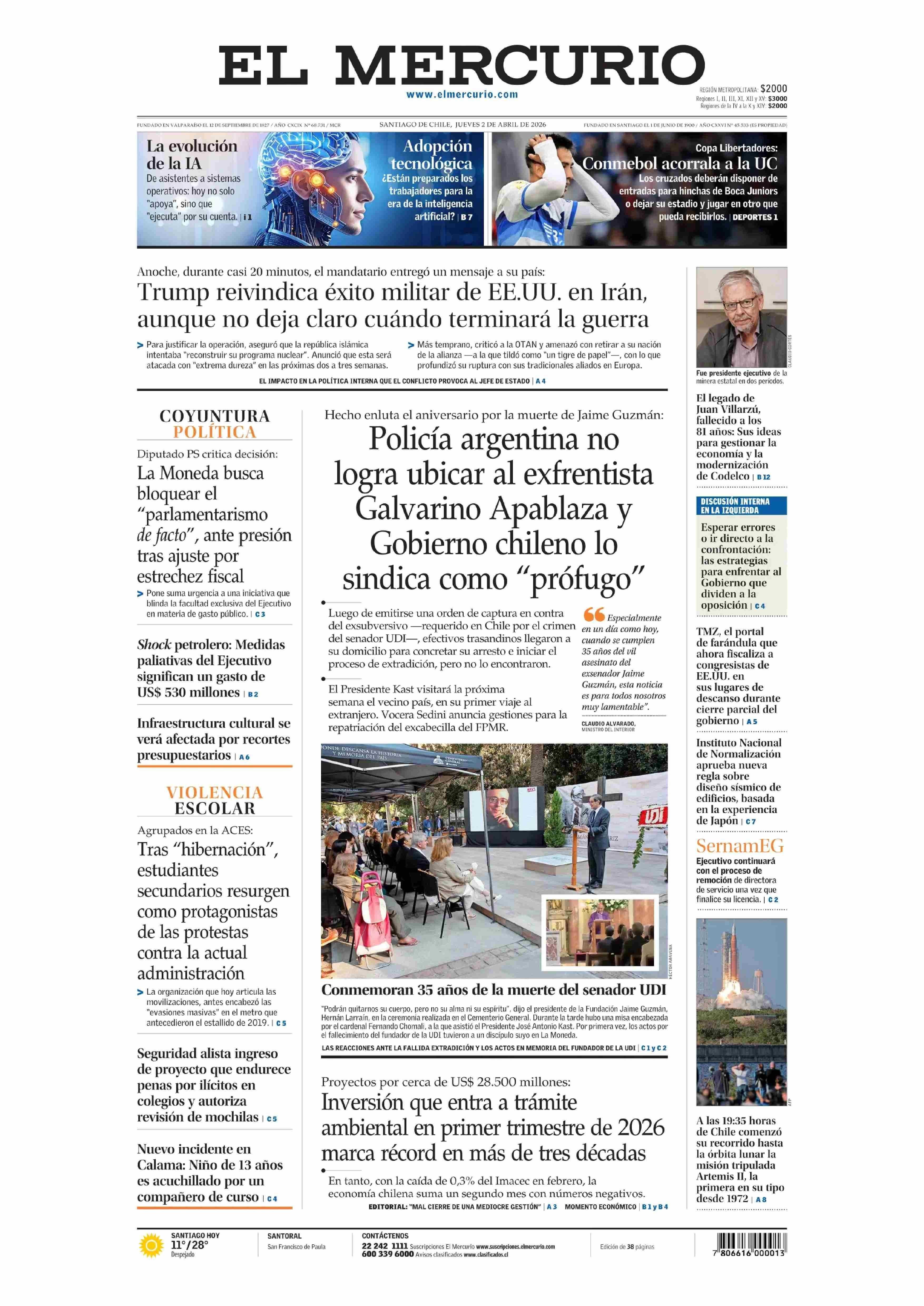 PORTADA EL MERCURIO (A) CHILE 02-04-2026 El Mercurio |