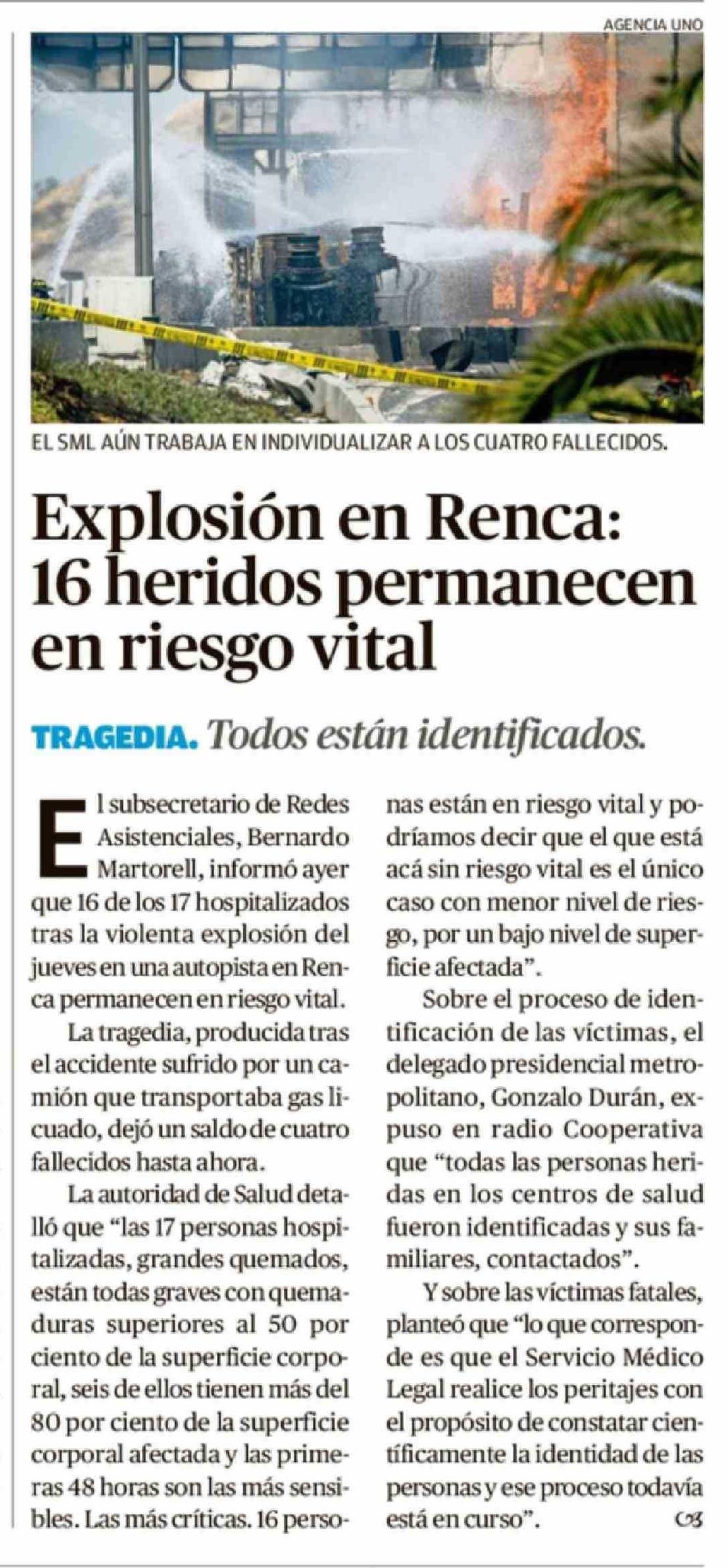 | Título: | Explosión en Renca: 16 heridos permanecen en riesgo vital |