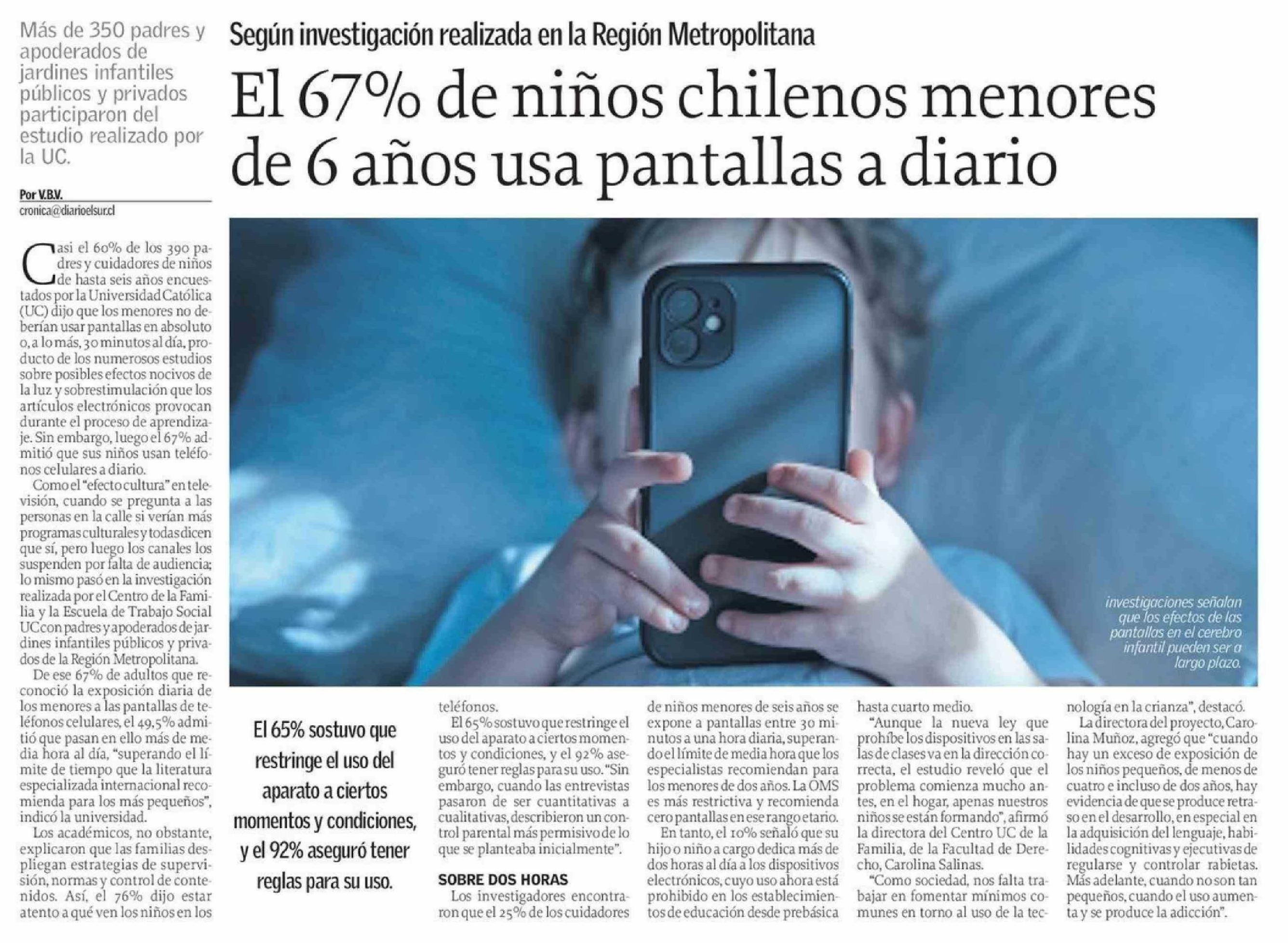 El 67% de niños chilenos menores de 6 años usa pantallas a diario 23-04-2026 El Sur |