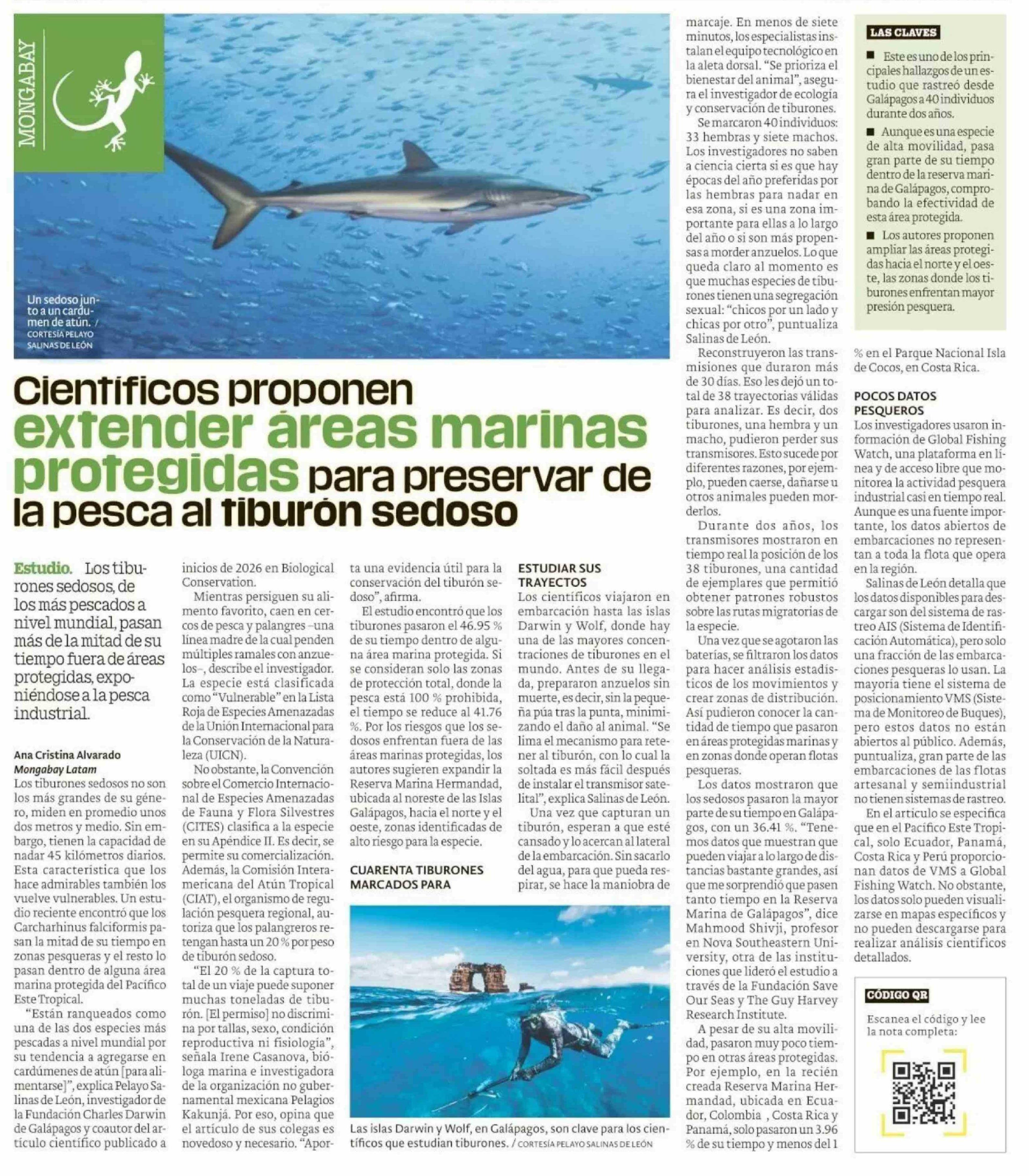Título: Científicos proponen extender areas marinas protegidas para preservar de la pesca al tiburon sedoso