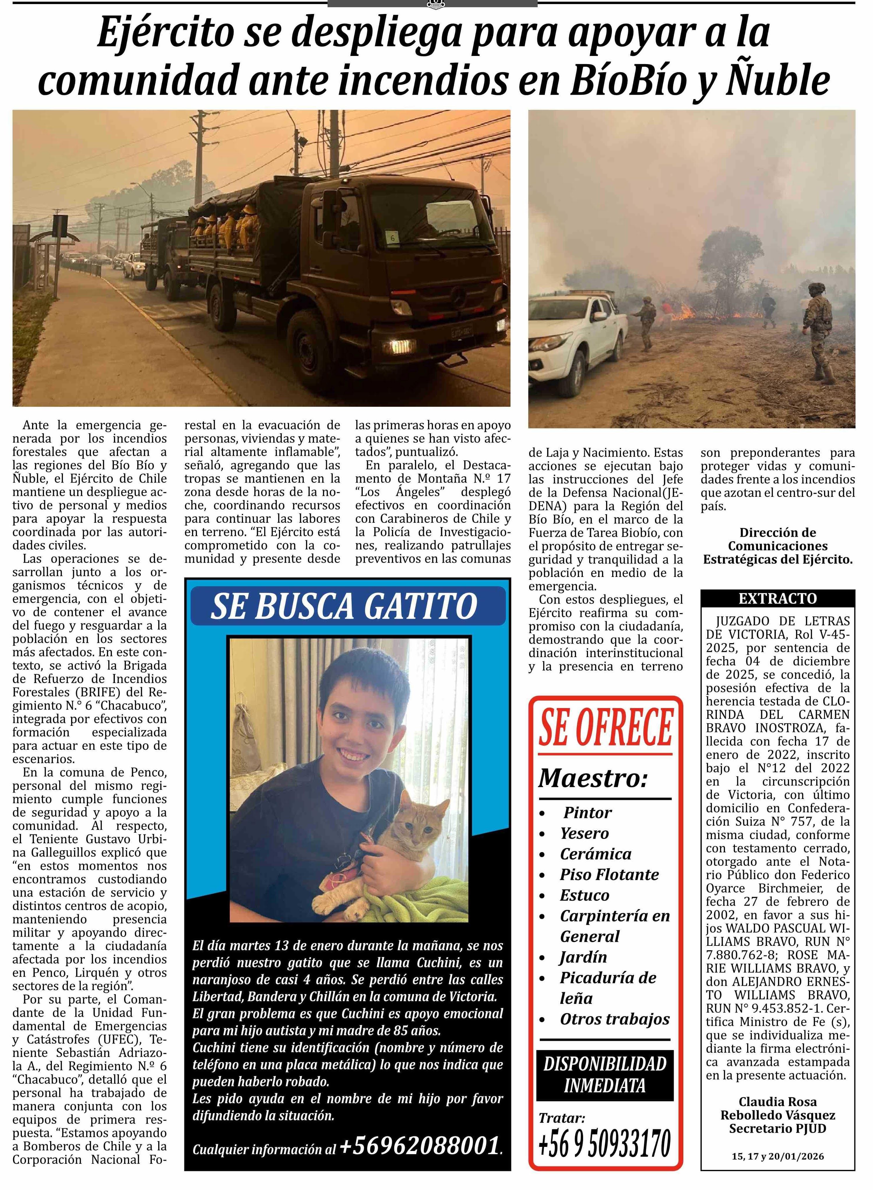 Fecha: 20-01-2026 Sector: Noticia general Región: Región de la Araucanía