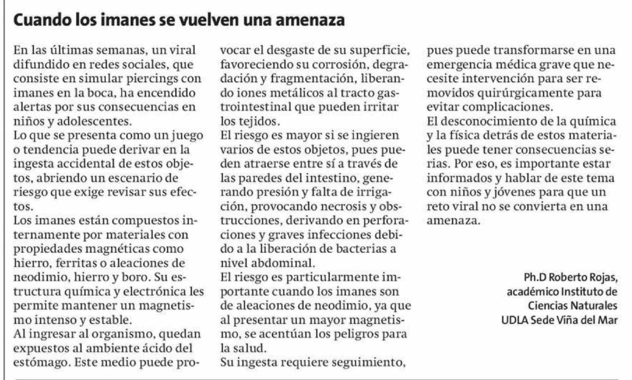 Cartas: Cuando los imanes se vuelven una amenaza 17-04-2026 La Estrella de Iquique |