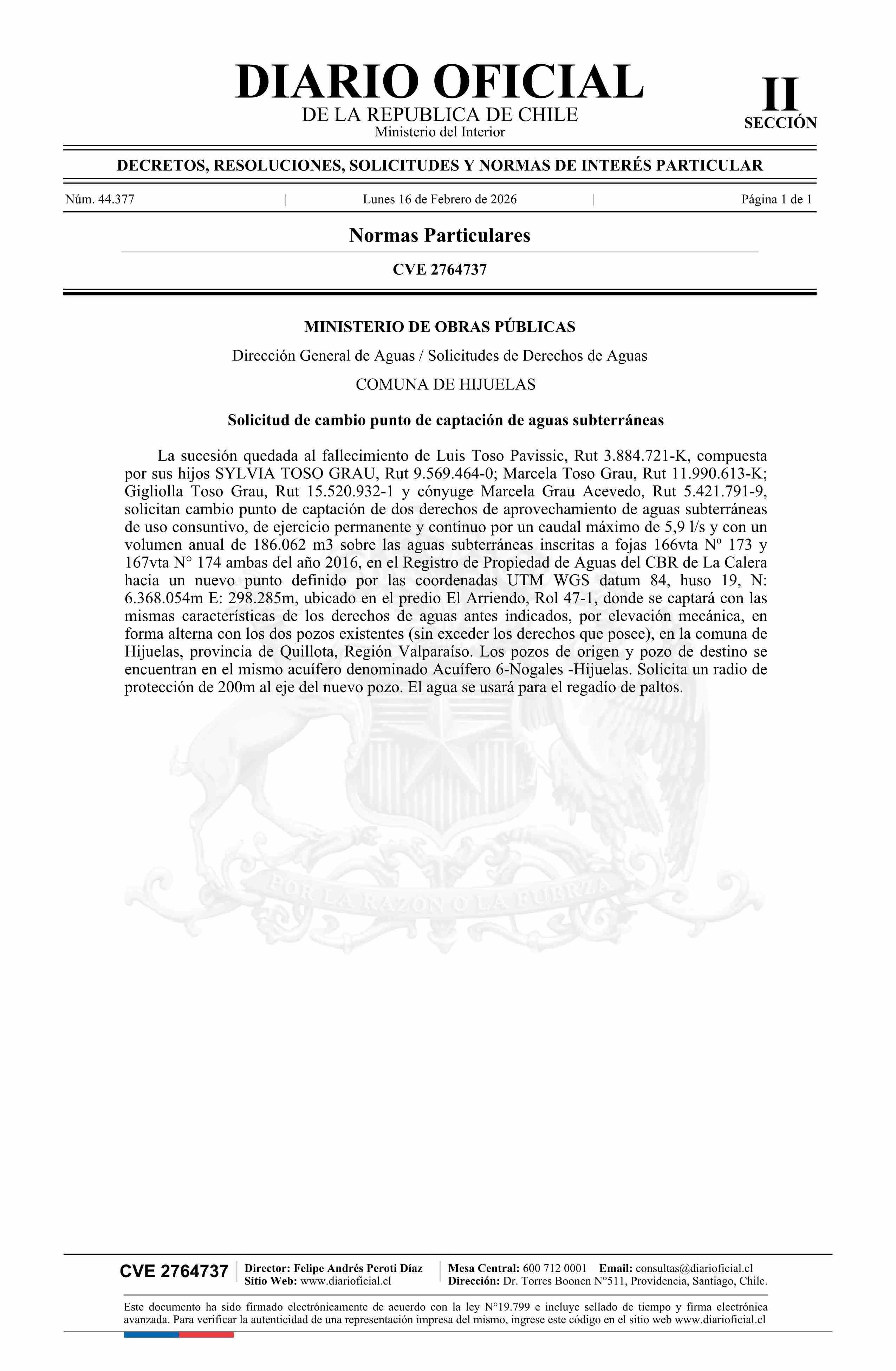 Fuente: Diario Oficial Edición Electrónica (Diario Oficial de Chile - 2 Normas Particulares) Página(s): 207