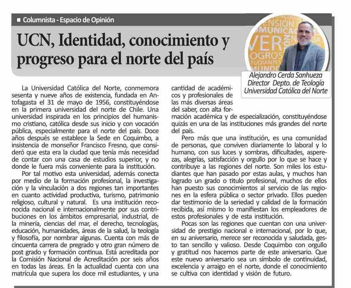 COLUMNAS DE OPINIÓN: UCN, Identidad, conocimiento y progreso para el norte del país 30-05-2025 Semanario Tiempo |