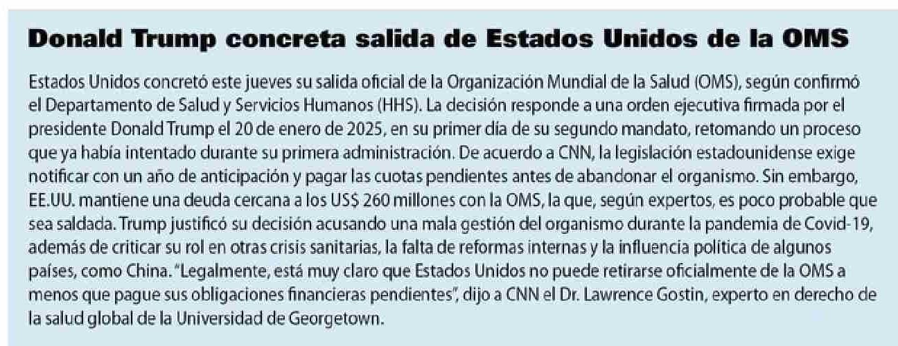 Título: Donald Trump concreta salida de Estados Unidos de la OMS