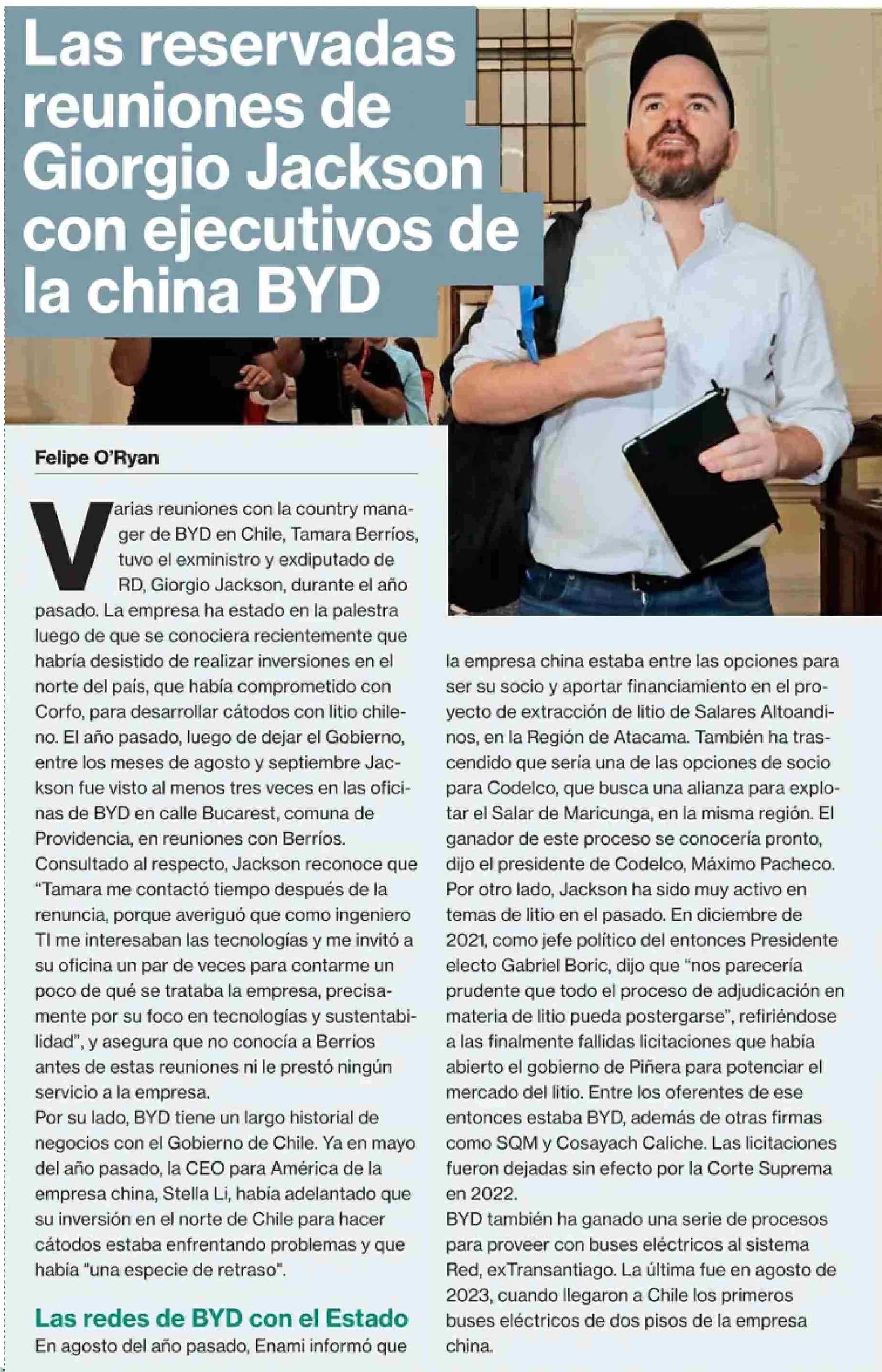 | Título: | Las reservadas reuniones de Giorgio Jackson con ejecutivos de la china BYD |