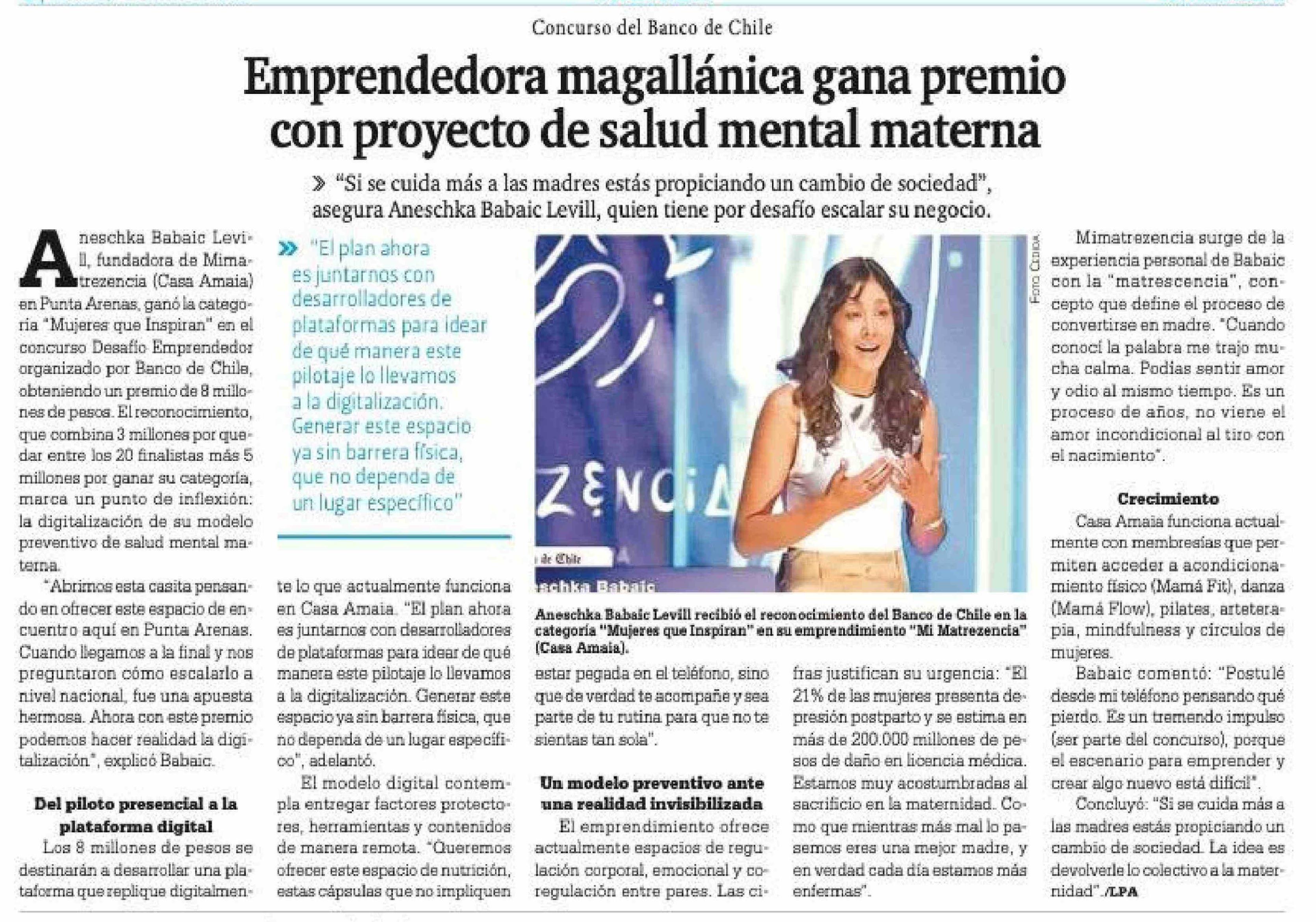 Emprendedora magallánica gana premio con proyecto de salud mental materna 20-02-2026 La Prensa Austral |