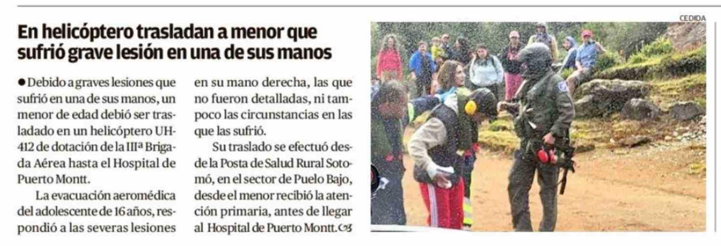 Título: En helicóptero trasladan a menor que sufrió grave lesión en una de sus manos