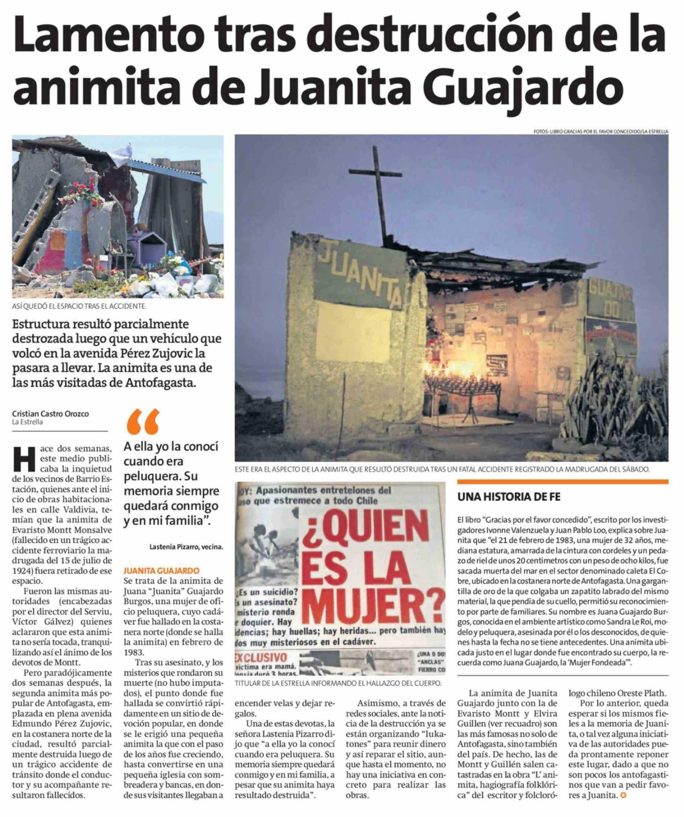 Lamento tras destrucción de la animita de Juanita Guajardo