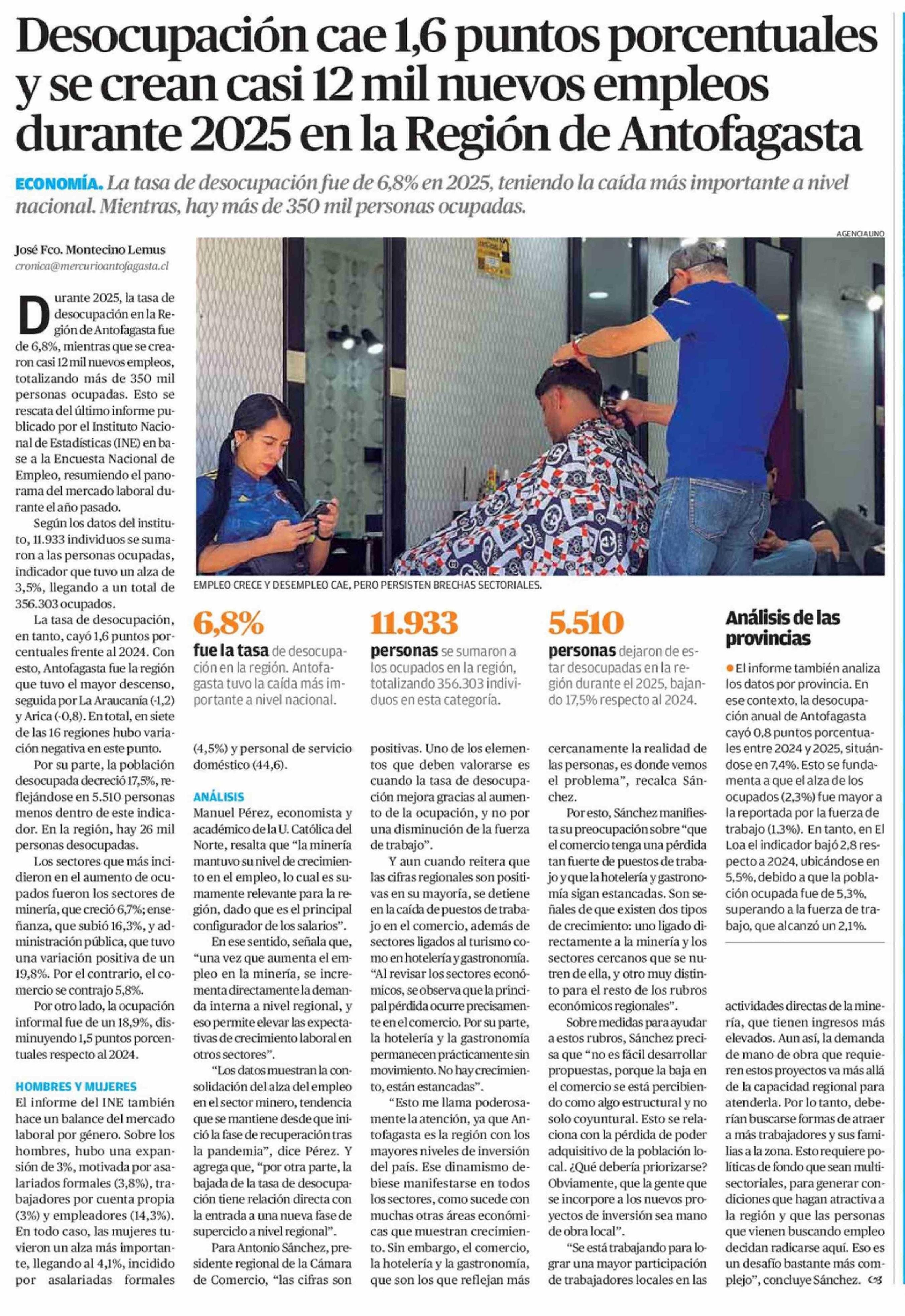 Título: Desocupación cae 1,6 puntos porcentuales y se crean casi 12 mil nuevos empleos durante 2025 en la Región de Antofagasta