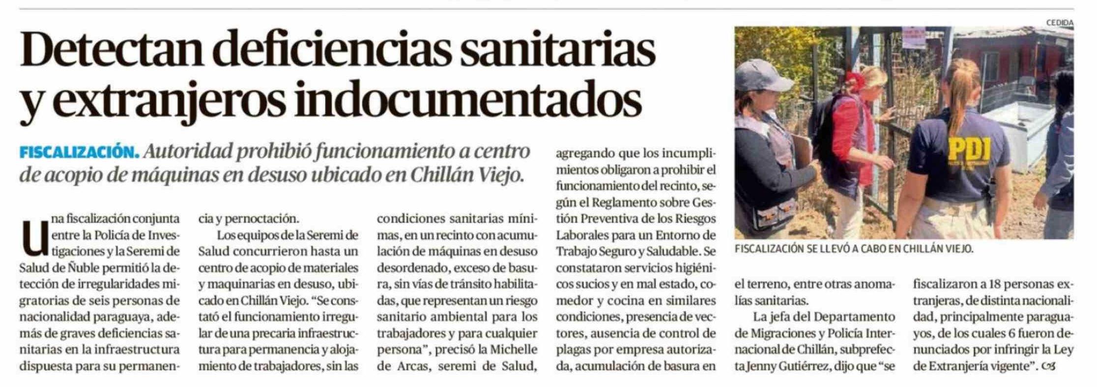 Título: Detectan deficiencias sanitarias y extranjeros indocumentados