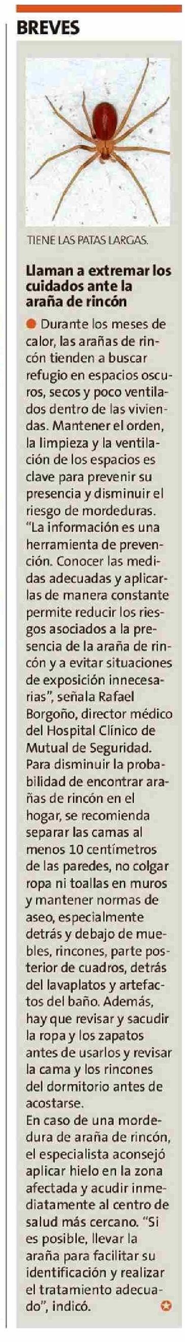 Título: Llaman a extremar los cuidados ante la araña de rincón