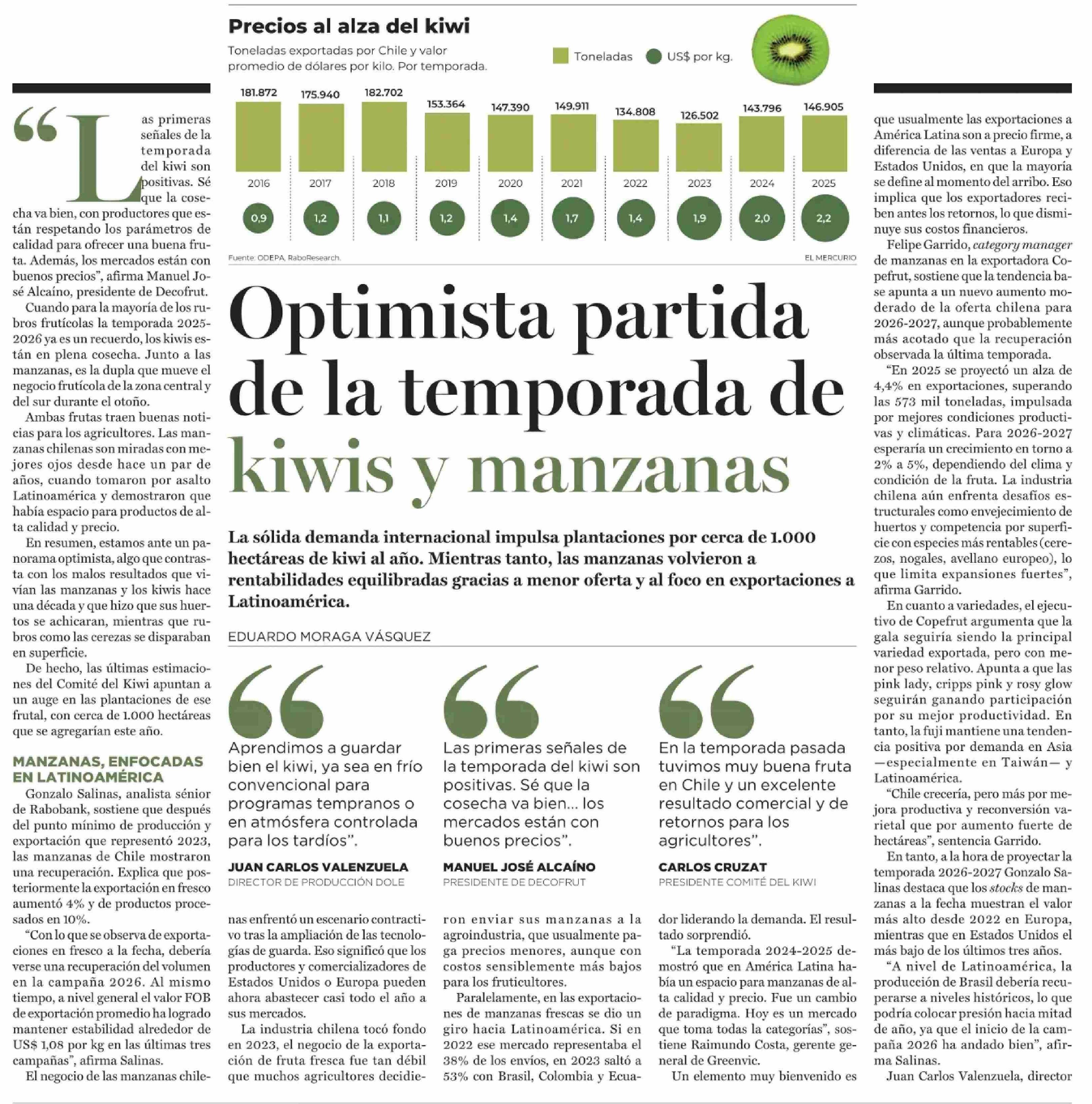 Optimista partida de la temporada de kiwis y manzanas 27-04-2026 El Mercurio |