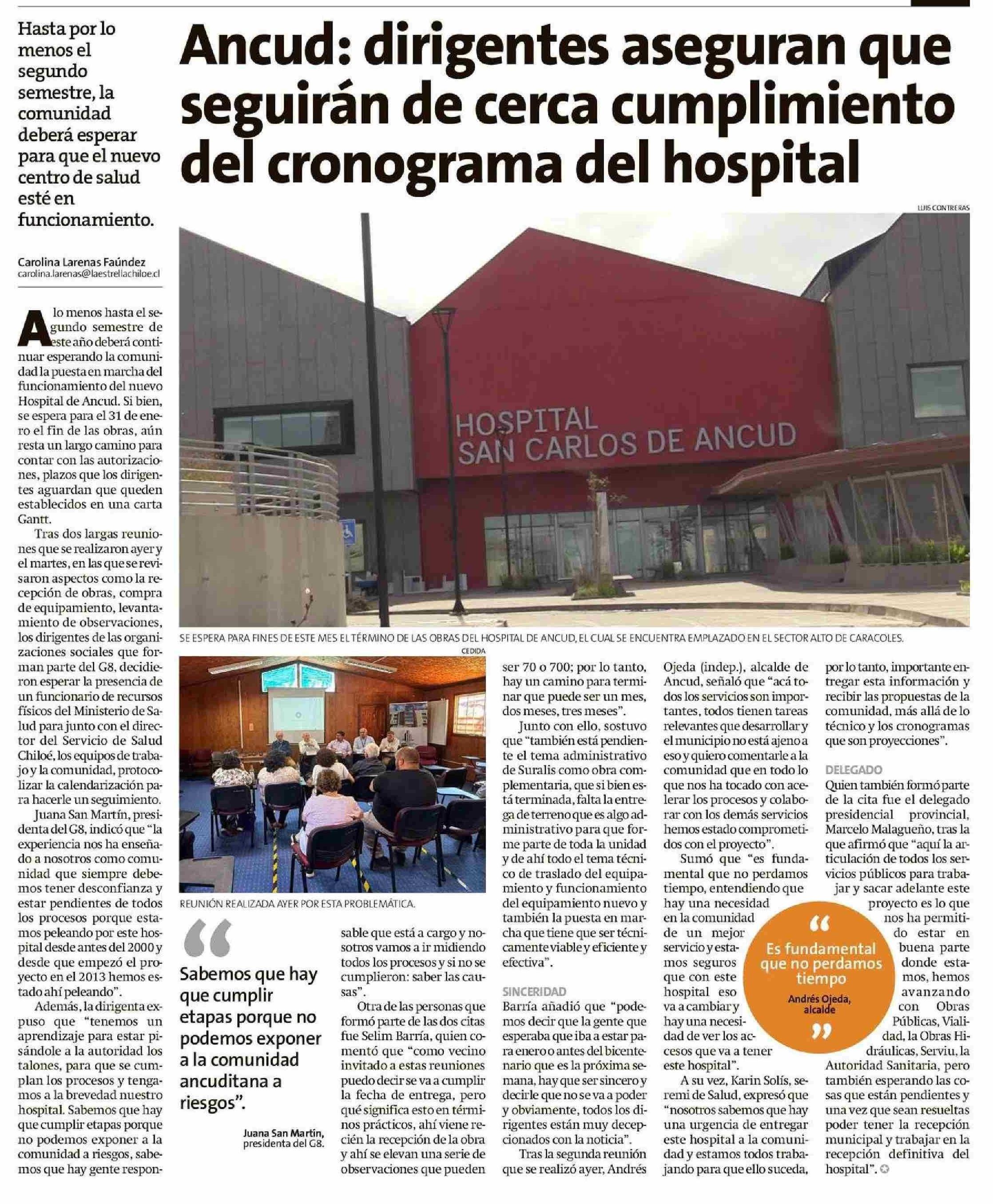 Ancud: dirigentes aseguran que seguirán de cerca cumplimiento del cronograma del hospital 08-01-2026 La Estrella de Chiloé |