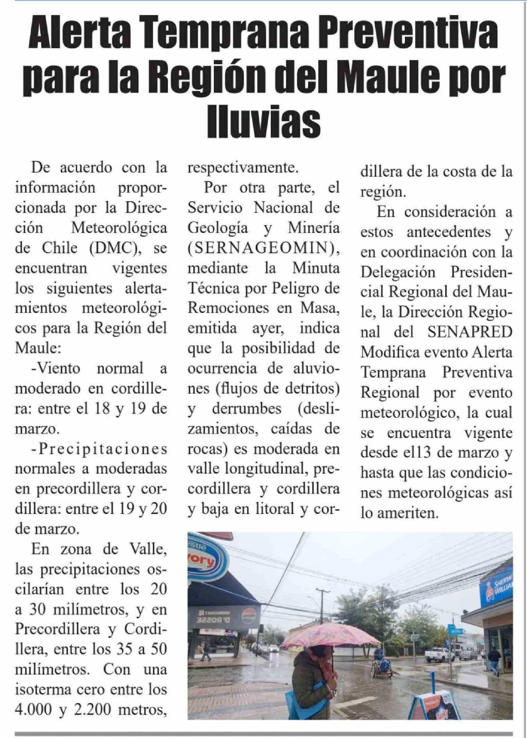 Título: Alerta Temprana Preventiva para la Región del Maule por lluvias