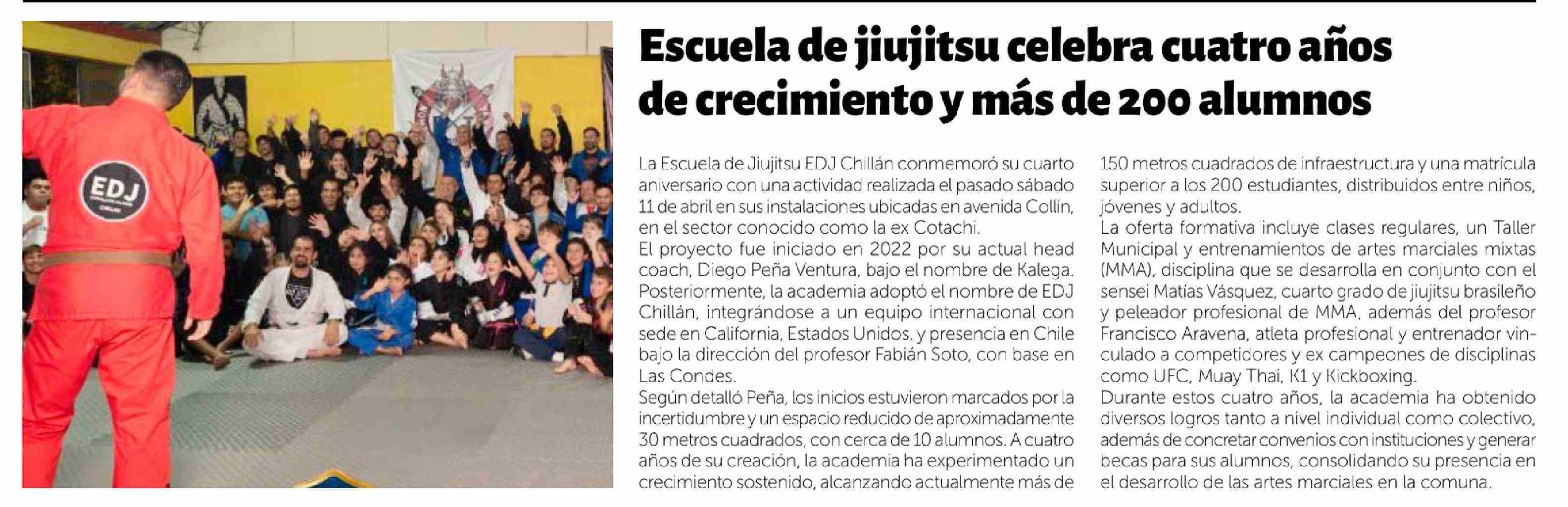 Escuela de jiujitsu celebra cuatro años de crecimiento y más de 200 alumnos 25-04-2026 La Discusión |
