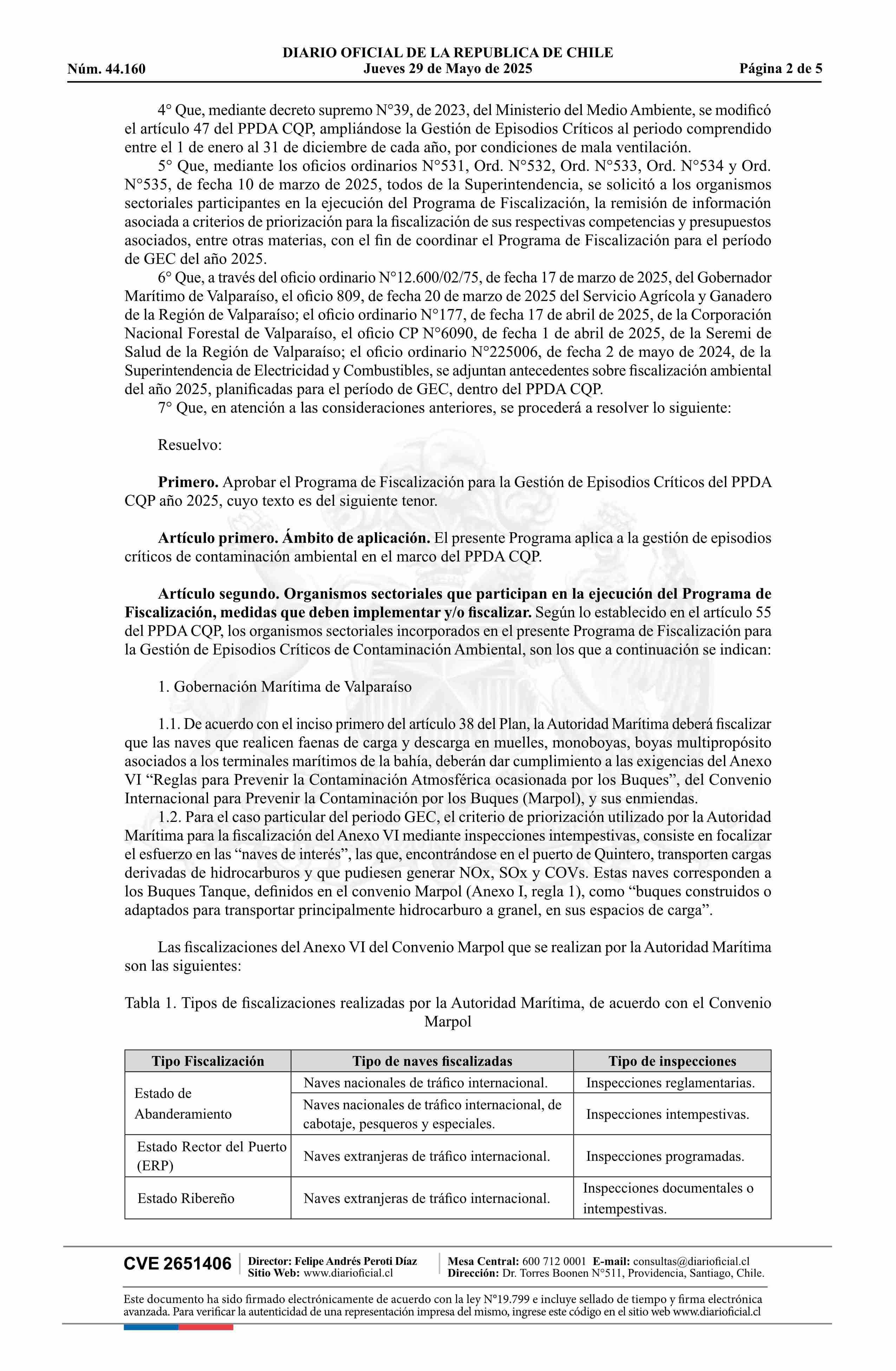 | Título: | Resolución exenta número 995, de 2025.- Instruye Programa de Fiscalización año 2025, para la Gestión de Episodios Críticos de contaminación ambiental, dentro del plan de prevención y descontaminación atmosférica para las comunas de Concón, Quintero y Puchuncaví |