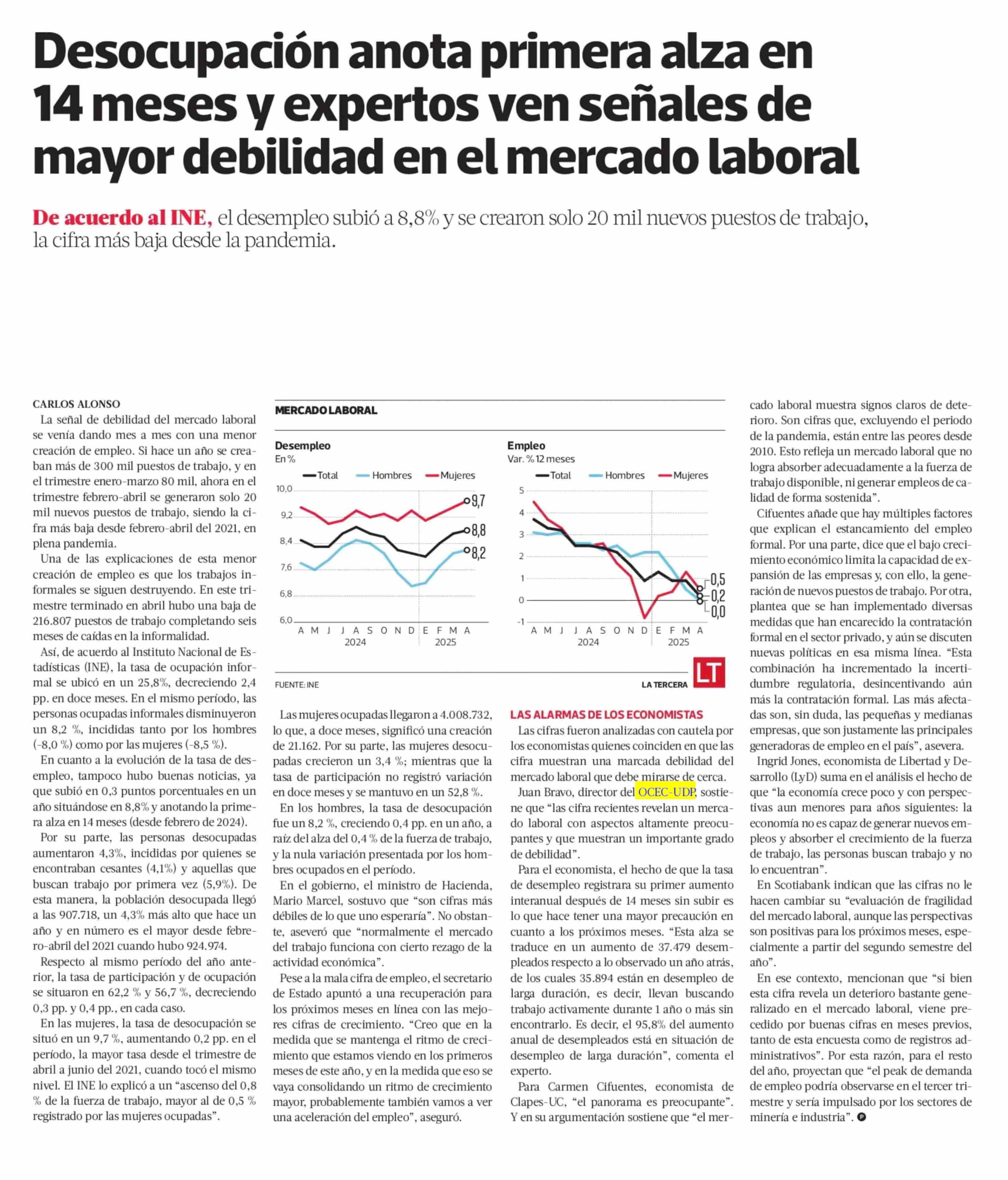 Título: Desocupación anota primera alza en 14 meses y expertos ven señales de mayor debilidad en el mercado laboral