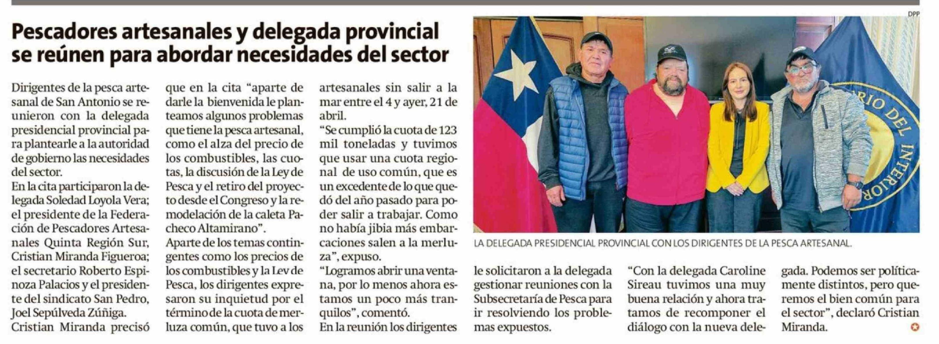 Pescadores artesanales y delegada provincial se reúnen para abordar necesidades del sector 22-04-2026 El Líder |