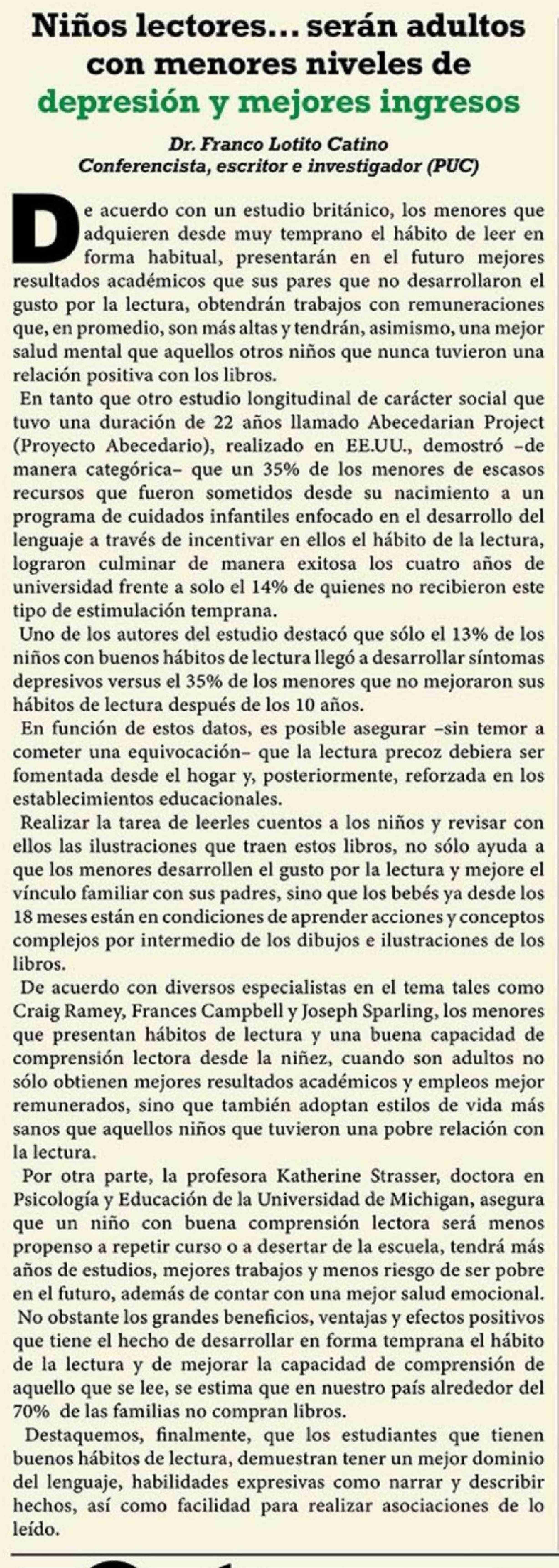 Columnas de Opinión: Niños lectores ... serán adultos con menores niveles de depresión y mejores ingresos