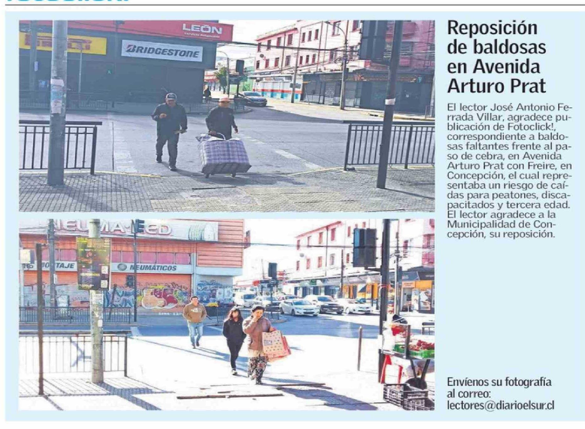 Reposición de baldosas en Avenida Arturo Prat 11-04-2026 El Sur |