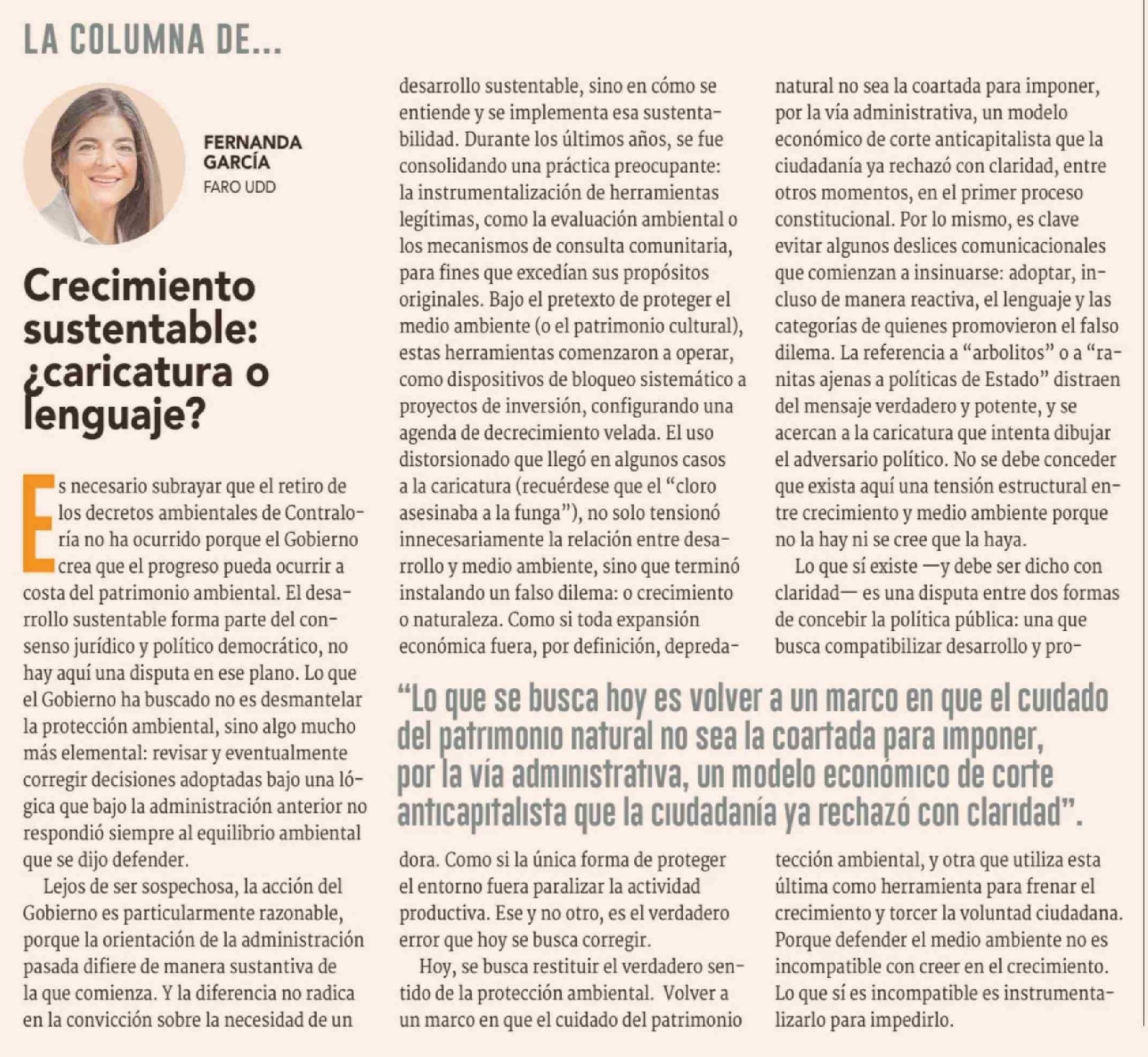 Columnas de Opinión: Crecimiento sustentable: ¿caricatura o lenguaje? 23-03-2026 Diario Financiero |