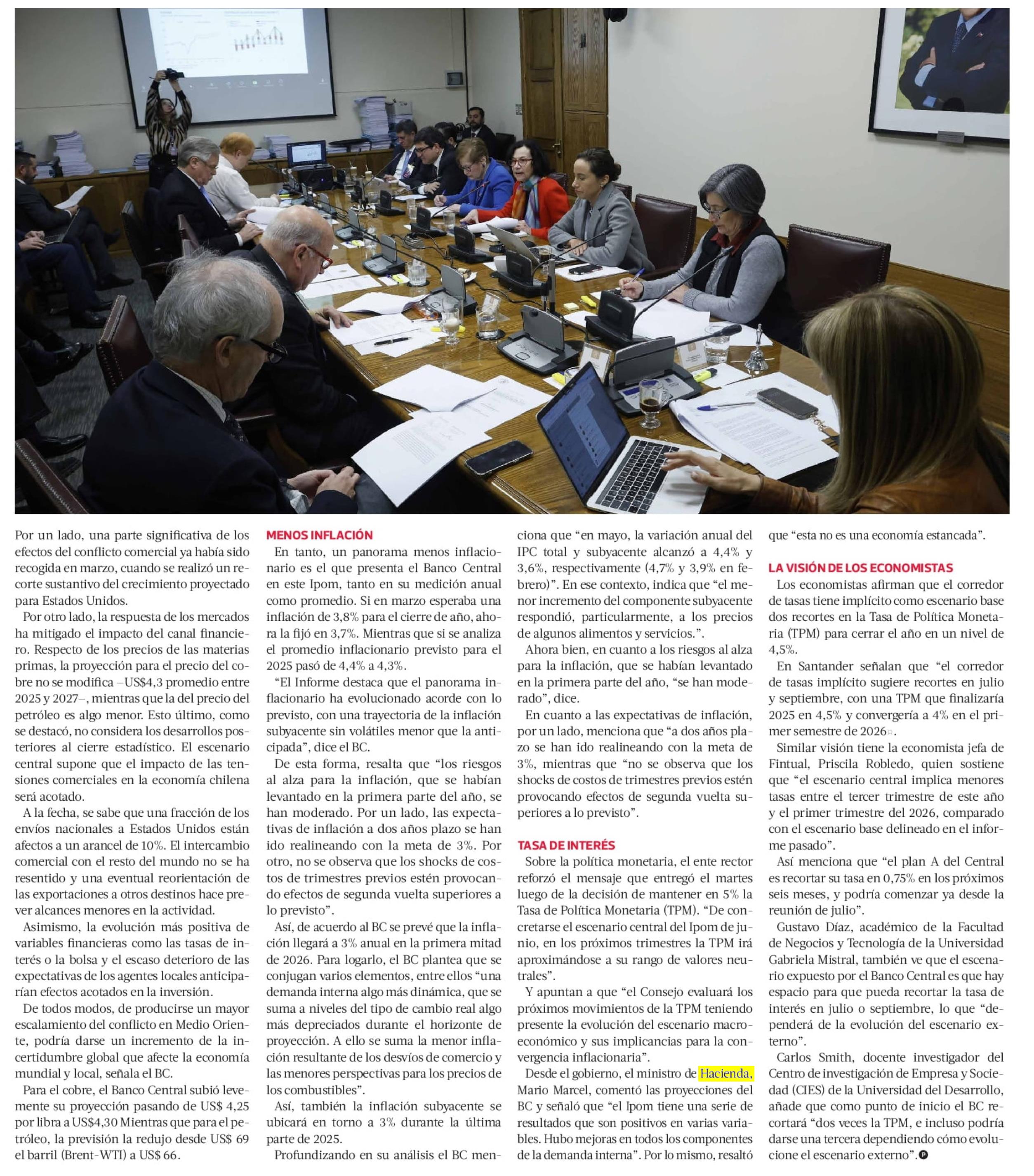BC sube PIB 2025, alerta por la mayor incertidumbre externa y se refrenda la visión de dos recortes de la tasa de interés en el segundo semestre 19-06-2025 La Tercera |