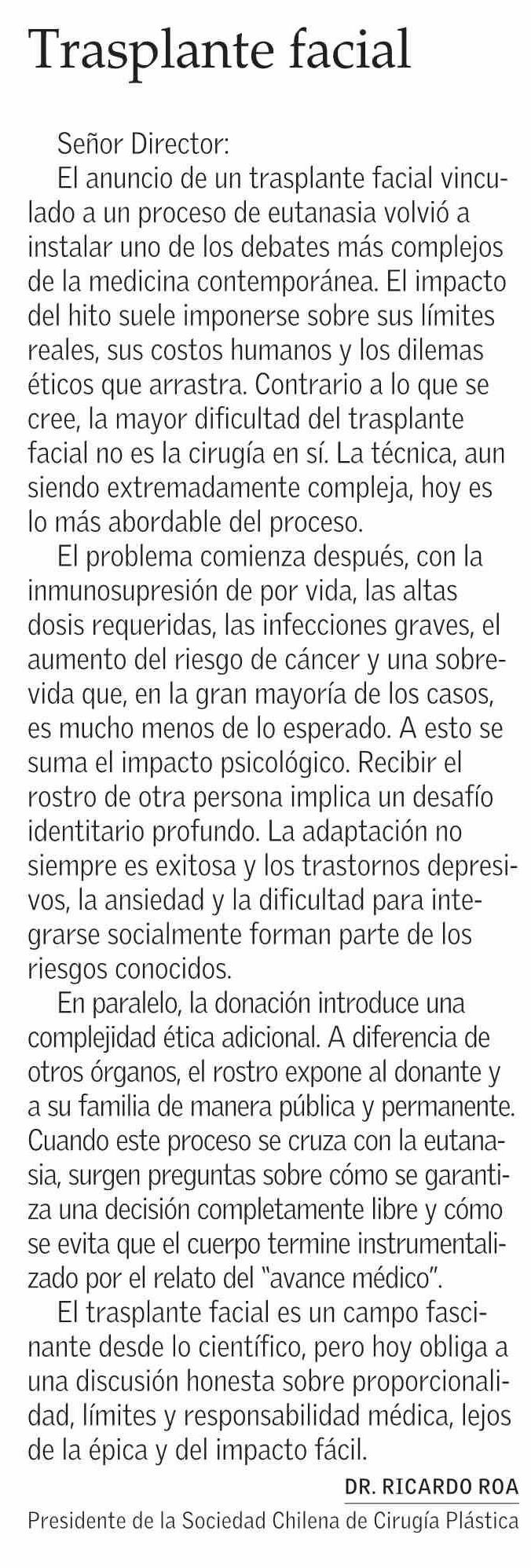 Cartas: Trasplante facial