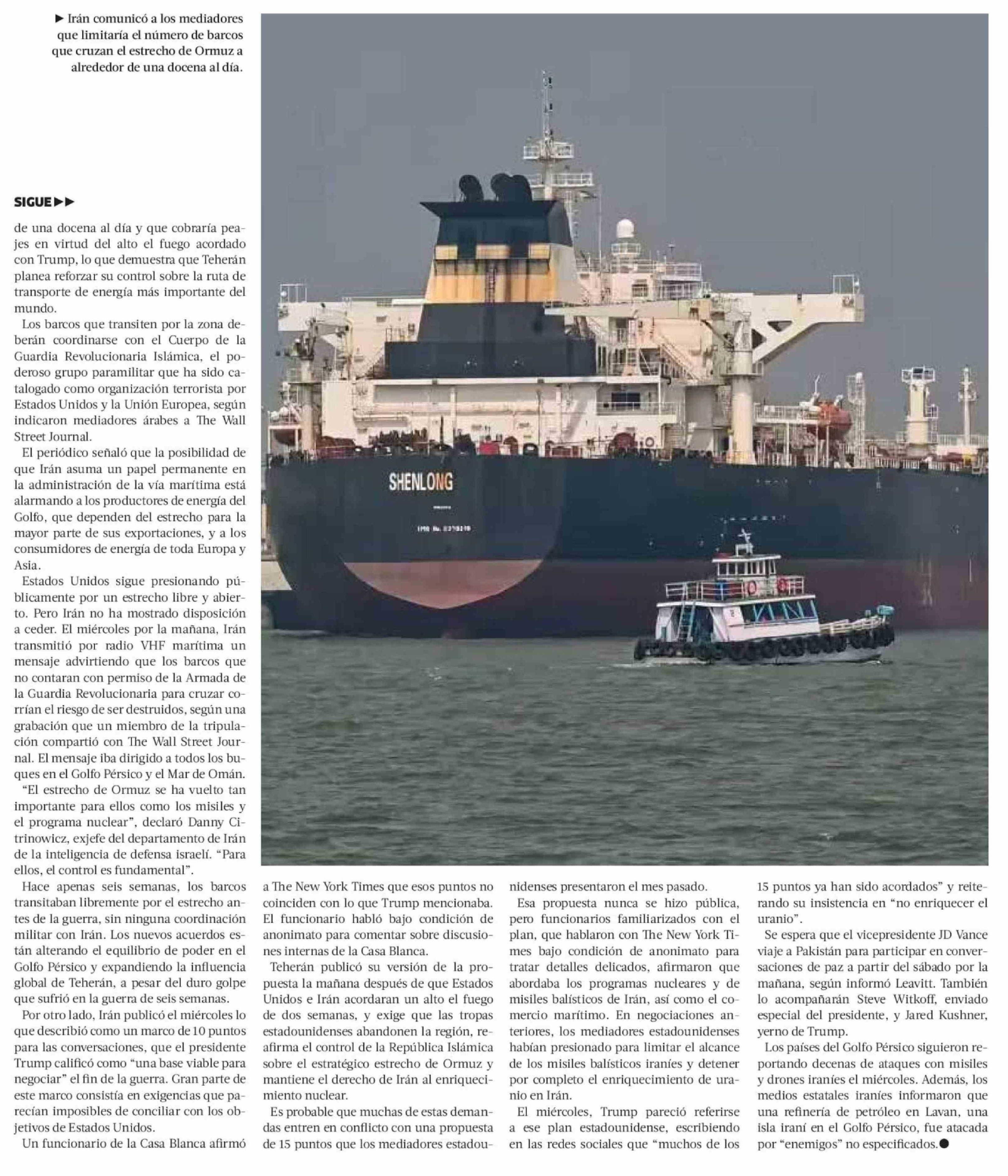 El alto el fuego entre EE.UU. e Irán muestra su fragilidad en medio de sobre el control de Ormuz ataques contra Líbano e incertidumbre 09-04-2026 La Tercera |