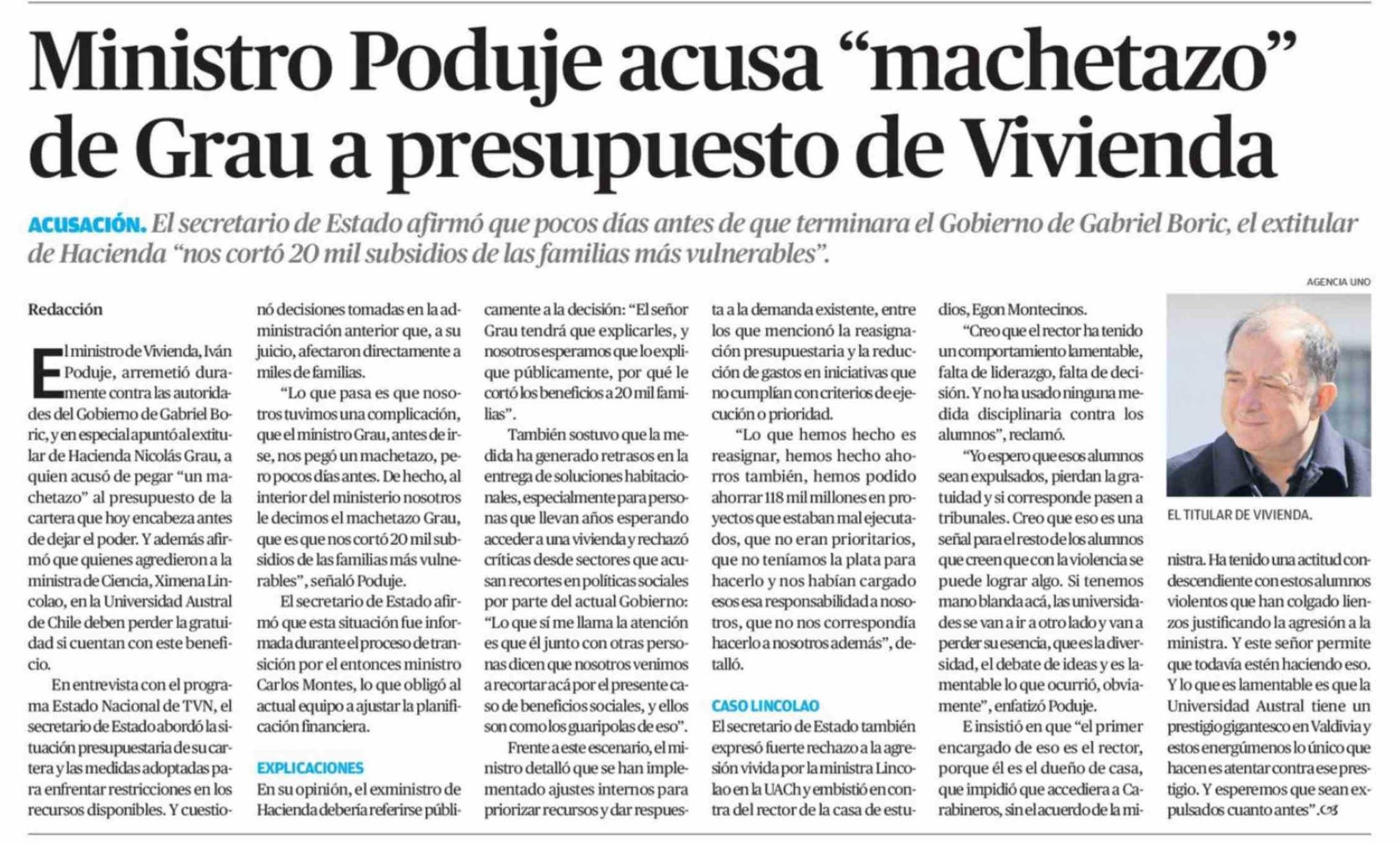 Título: Ministro Poduje acusa "machetazo" de Grau a presupuesto de Vivienda