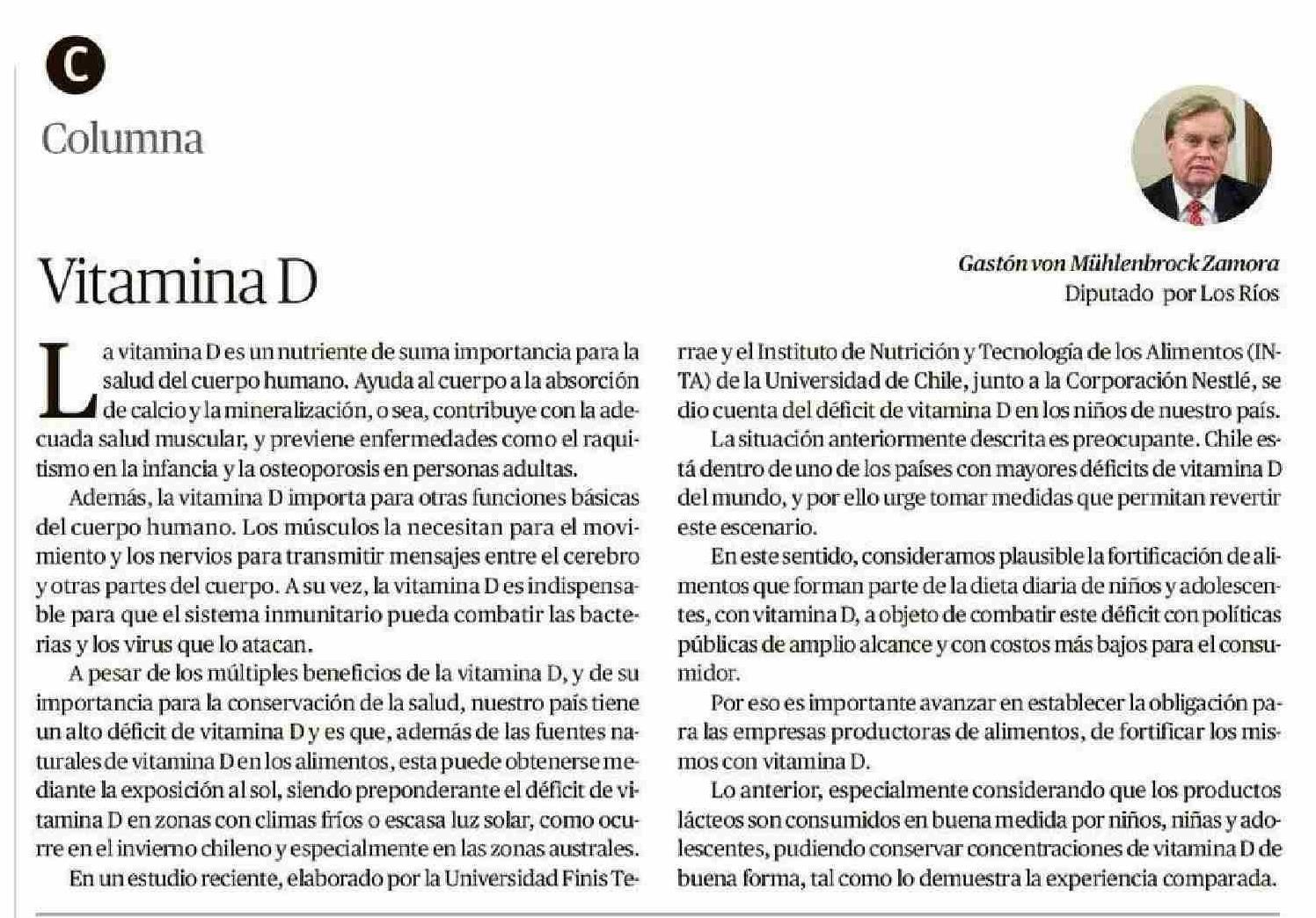 Columnas de Opinión: Vitamina D 17-01-2026 Diario Austral Región de Los Ríos |