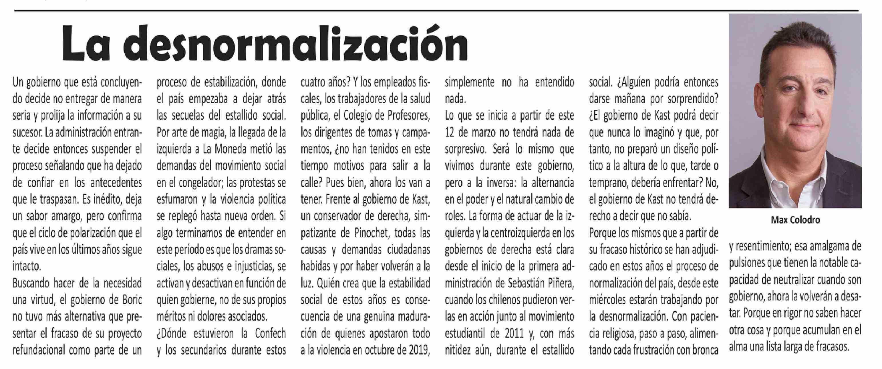 | Fecha: | 09-03-2026 | Sector: | Columnas de Opinión | Región: | Región de Tarapacá |