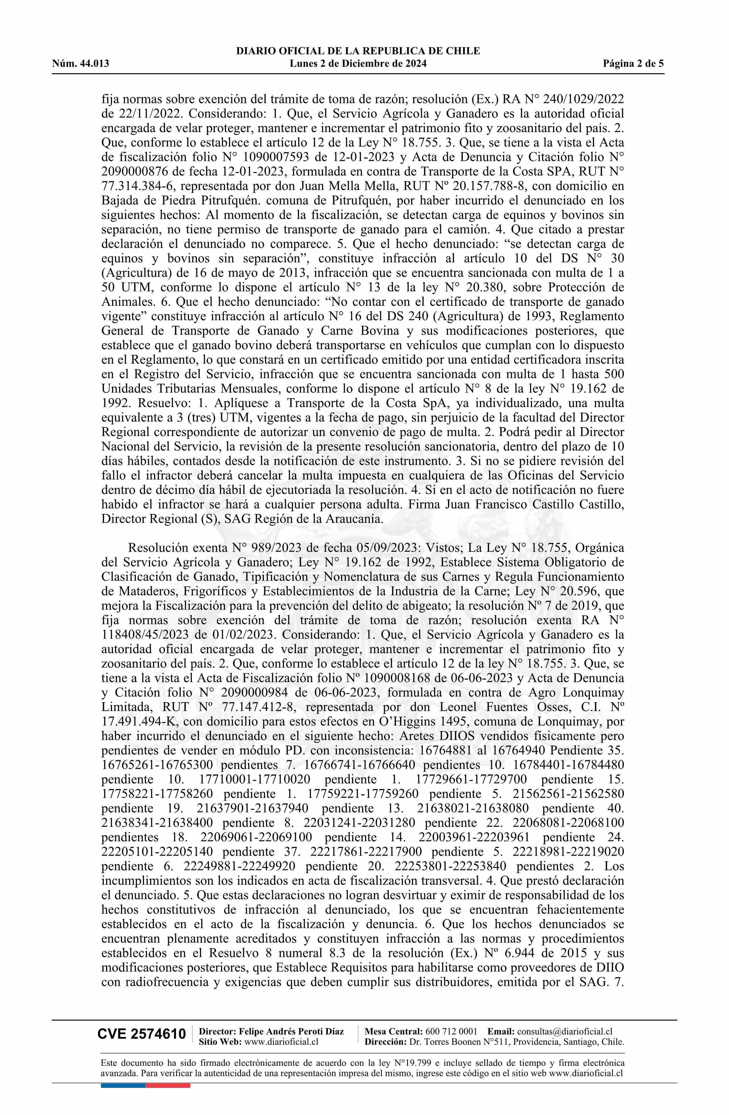 Fuente: Diario Oficial Edición Electrónica (Diario Oficial de Chile - 2 Normas Particulares) Página(s): 491-495