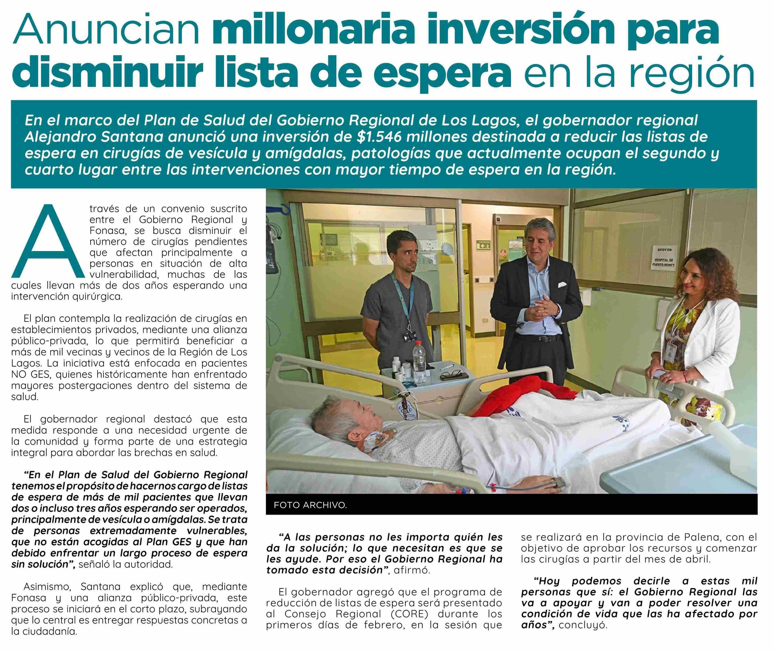 Título: Anuncian millonaria inversión para disminuir lista de espera en la región