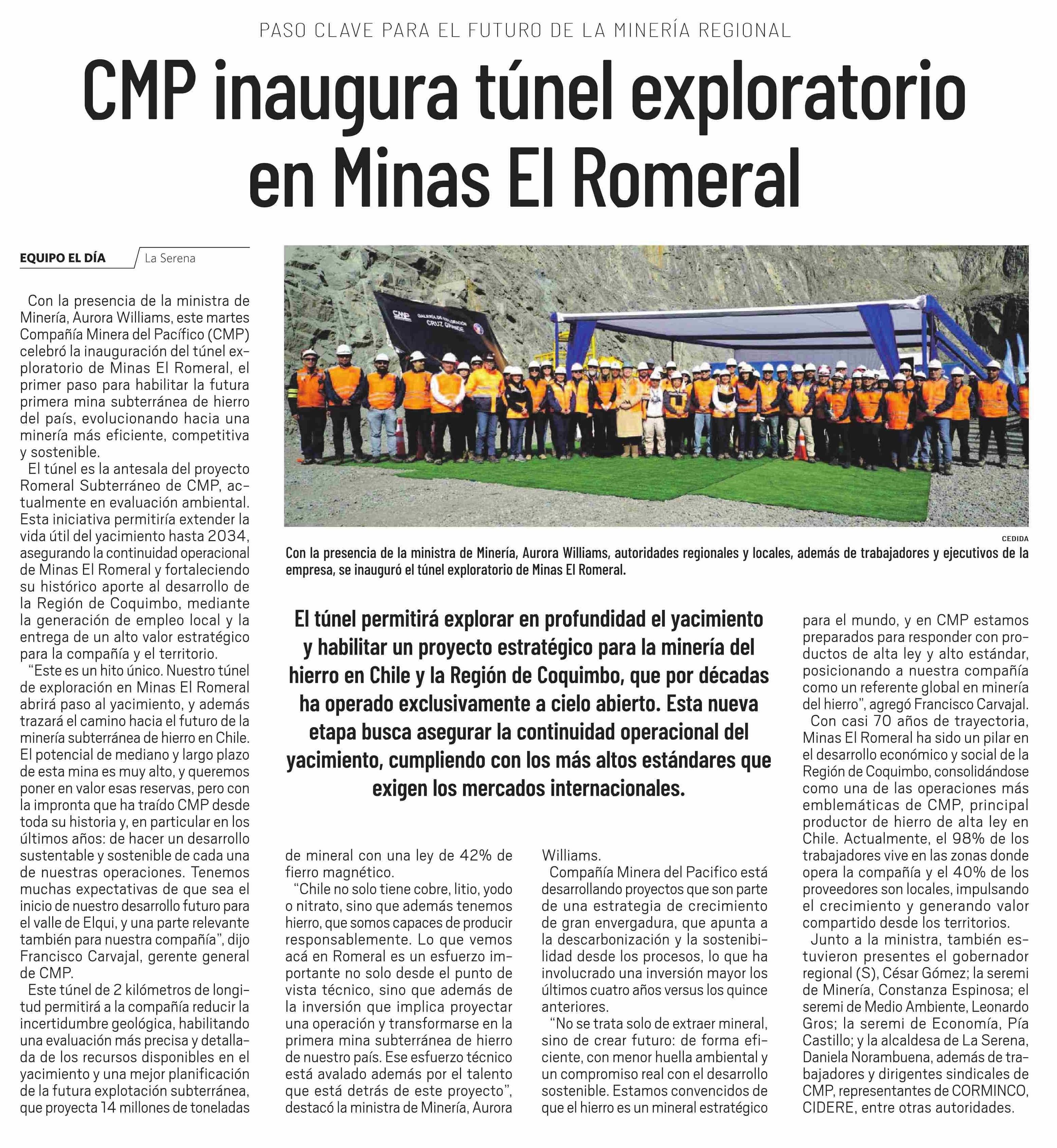 Título: CMP inaugura túnel exploratorio en Minas El Romeral