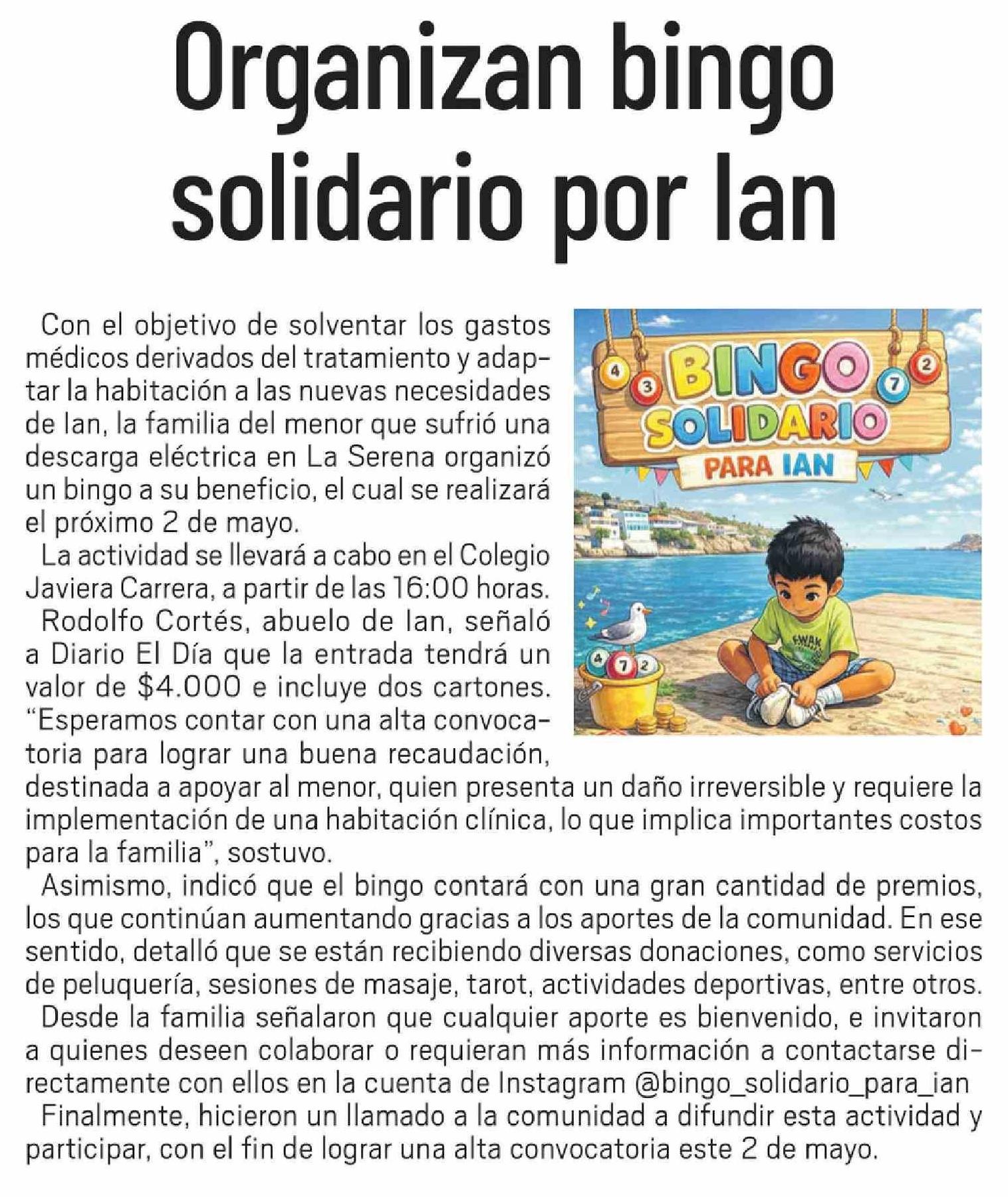 Organizan bingo solidario por lan 15-04-2026 El Día |