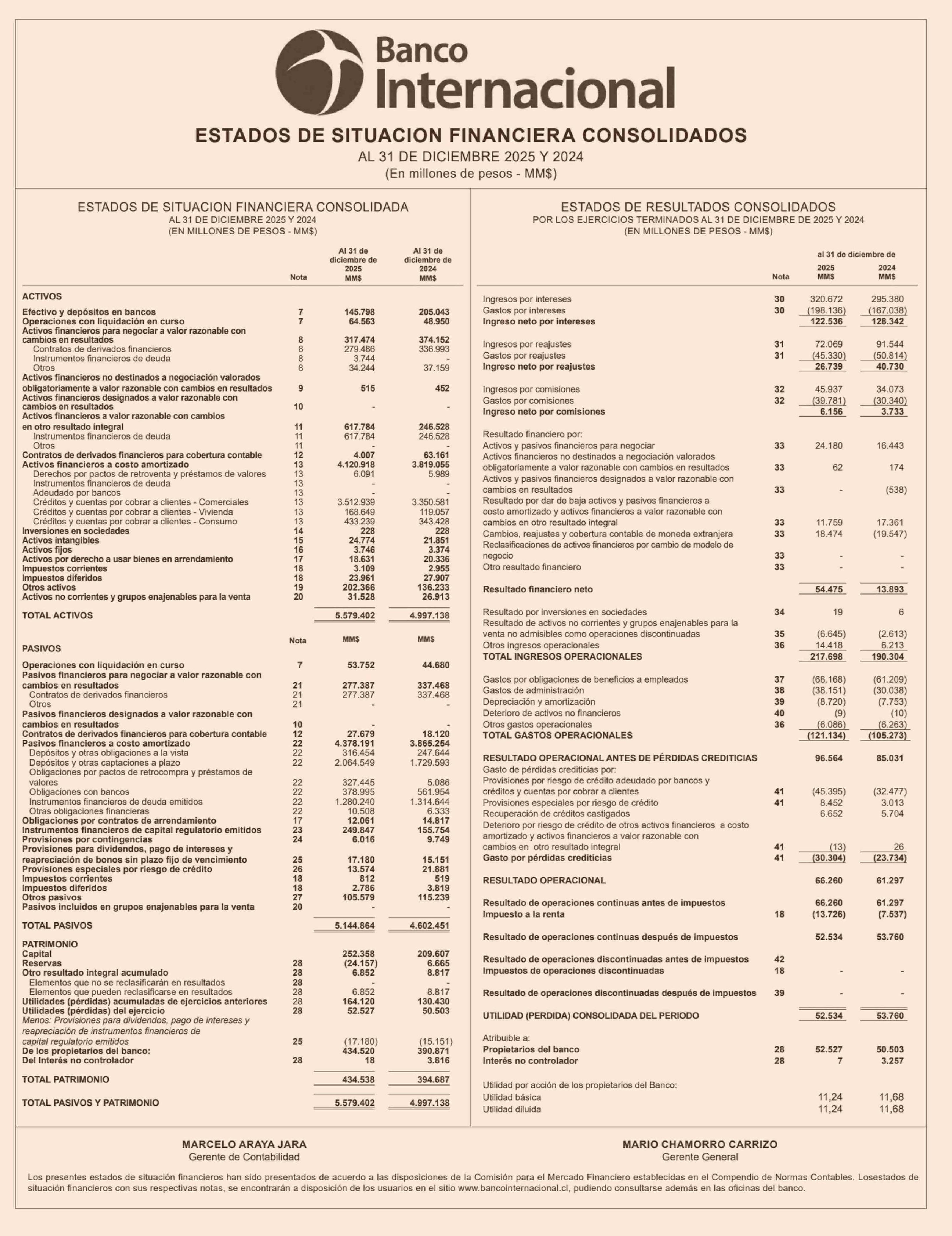Extractos: ESTADOS DE SITUACION FINANCIERA CONSOLIDADOS BANCO INTERNACIONAL