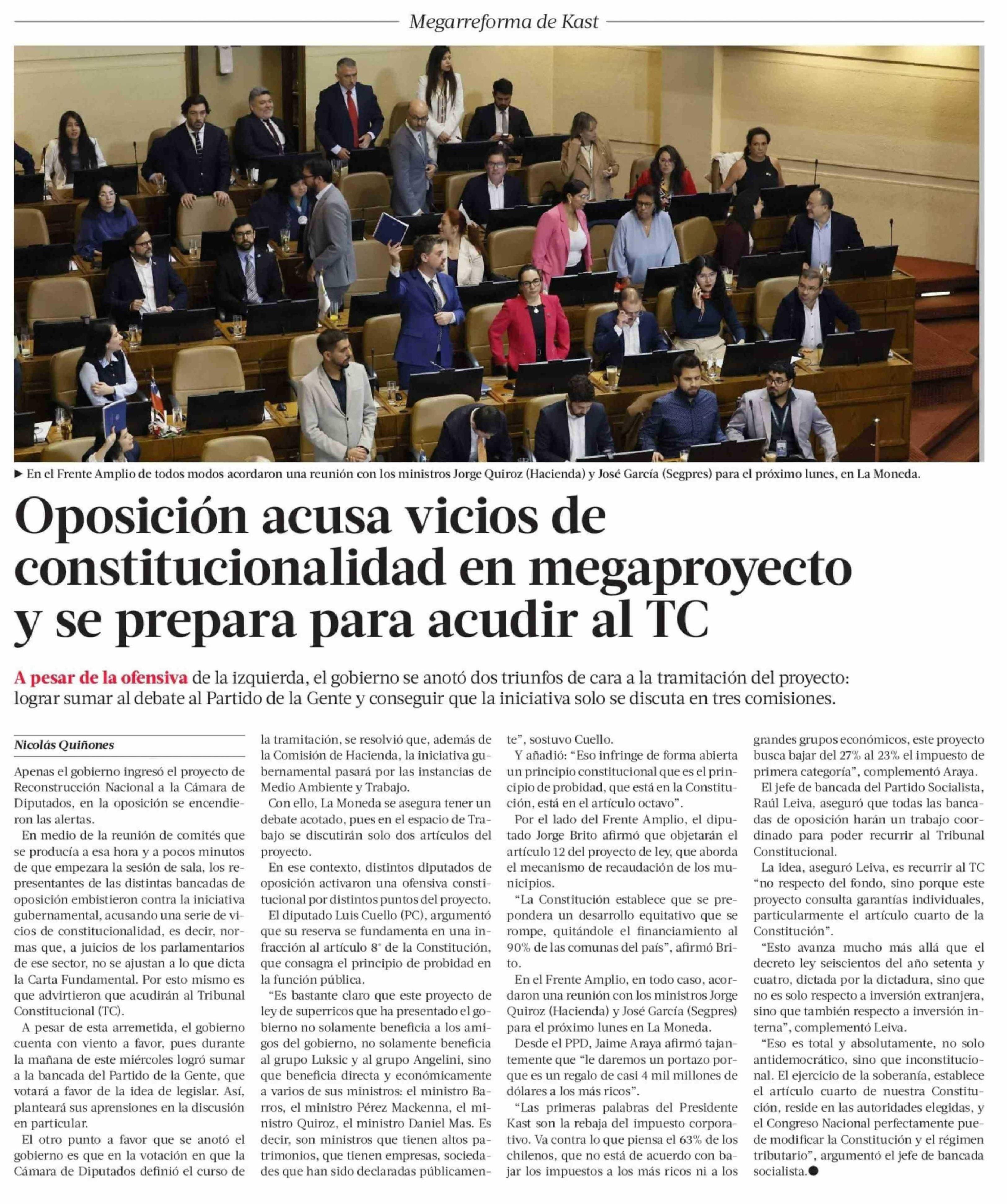 Kast ingresa megaproyecto con piso asegurado de votos a pesar de fuerte resistencia en la izquierda 23-04-2026 La Tercera |