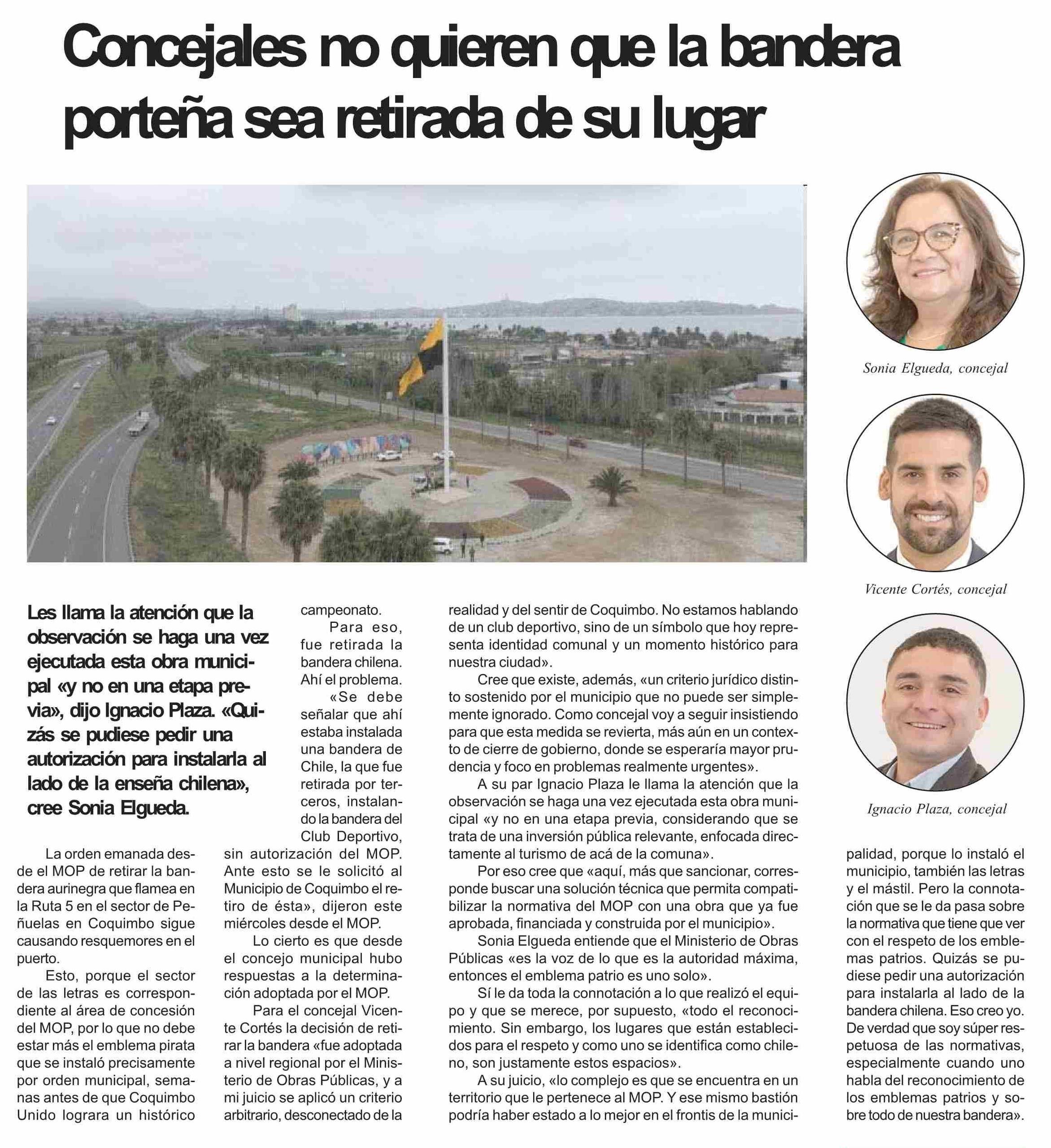 Concejales no quieren que la bandera porteña sea retirada de su lugar 06-02-2026 Diario la Región |