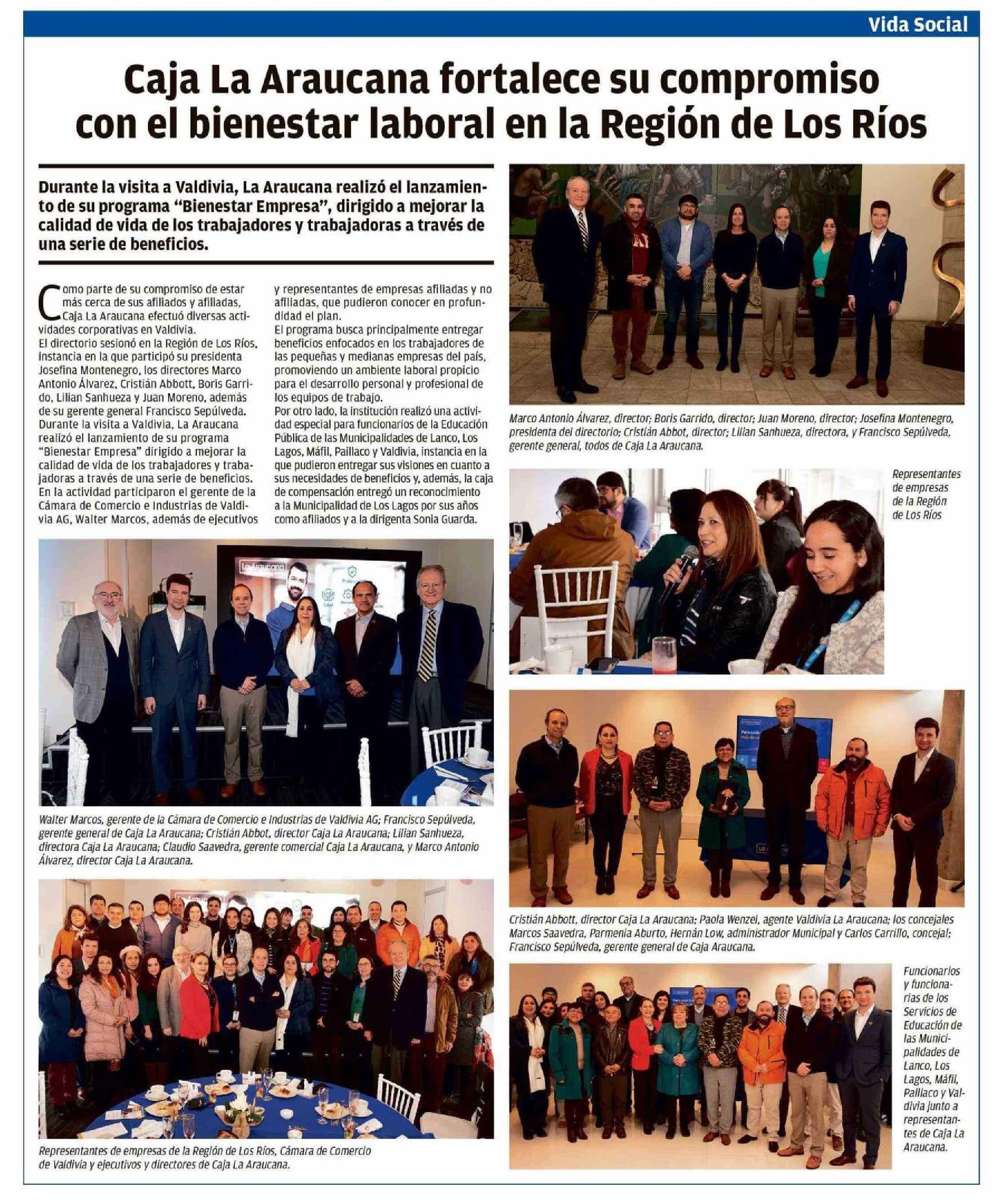 Caja La Araucana fortalece su compromiso con el bienestar laboral en la Región de Los Ríos 31-08-2023 Diario Austral Región de Los Ríos |