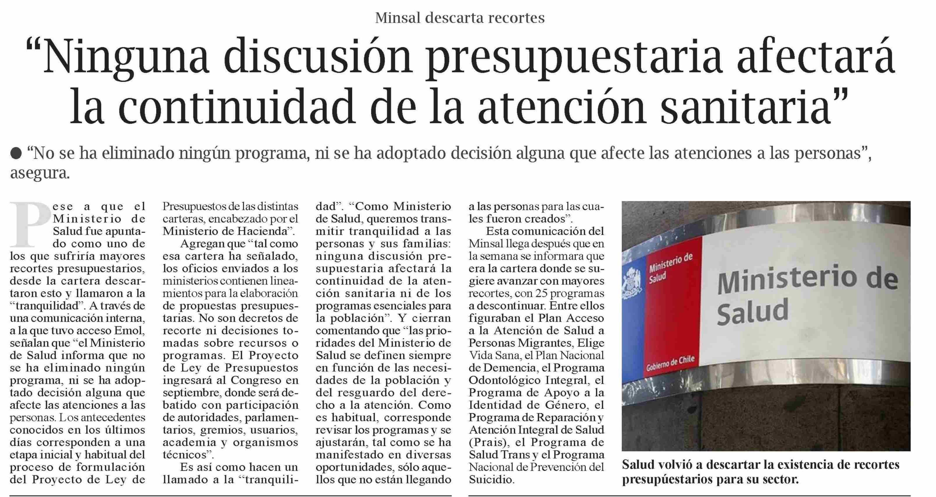 | Título: | “Ninguna discusión presupuestaria afectará la continuidad de la atención sanitaria” |