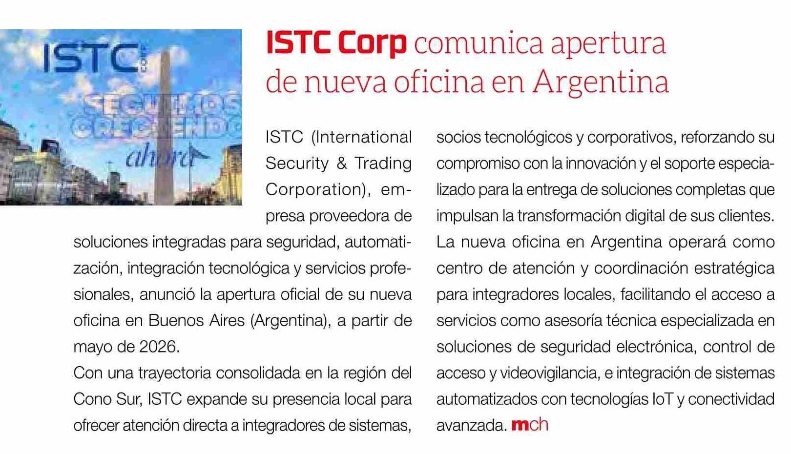 | Título: | ISTC Corp comunica apertura de nueva oficina en Argentina |