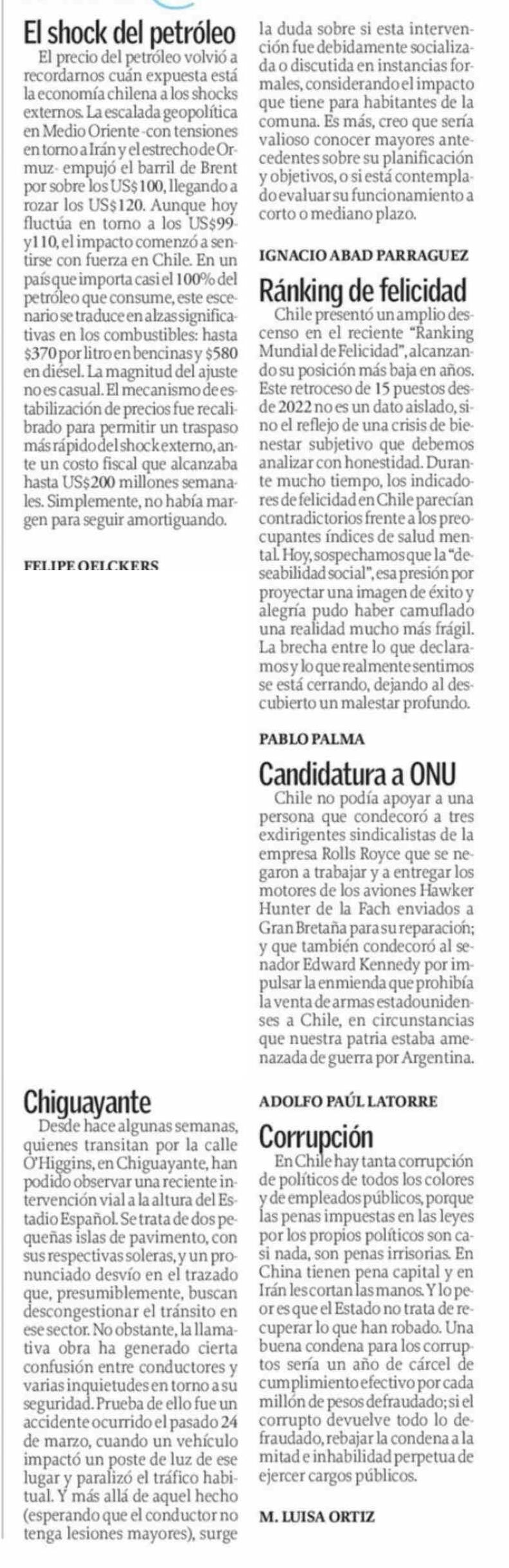 CARTAS: Chiguayante 28-03-2026 El Sur |