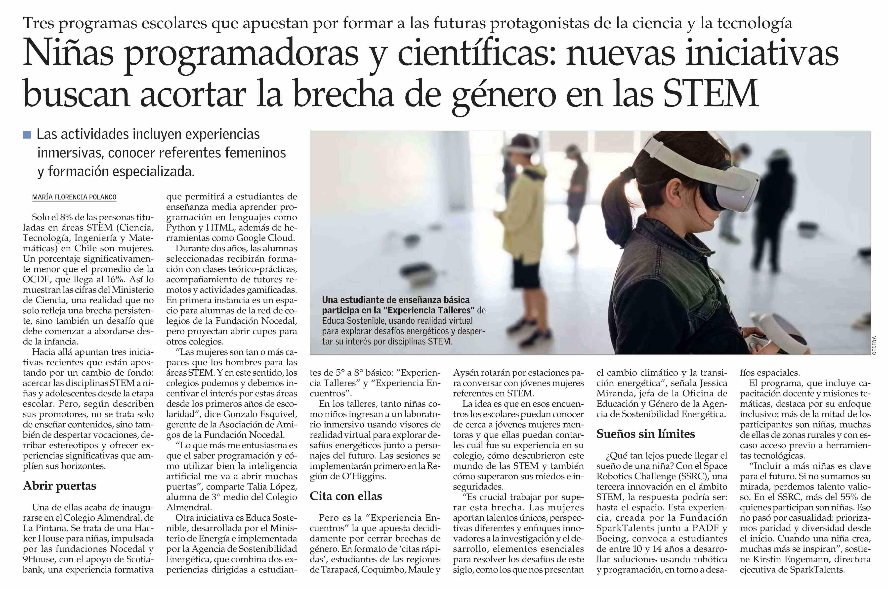 Niñas programadoras y científicas: nuevas iniciativas buscan acortar la brecha de género en las STEM 01-06-2025 El Mercurio |