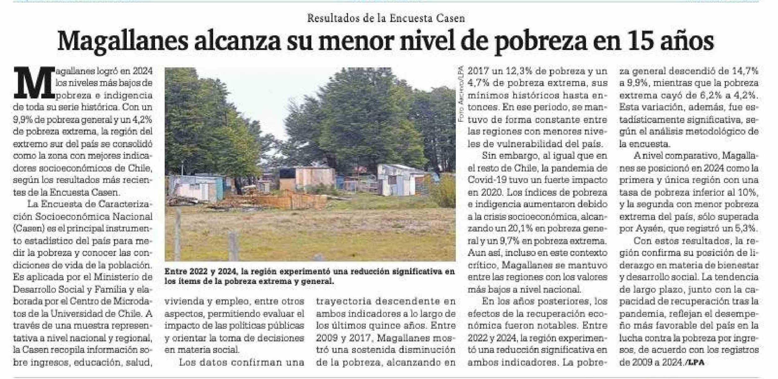 Magallanes alcanza su menor nivel de pobreza en 15 años 09-01-2026 La Prensa Austral |