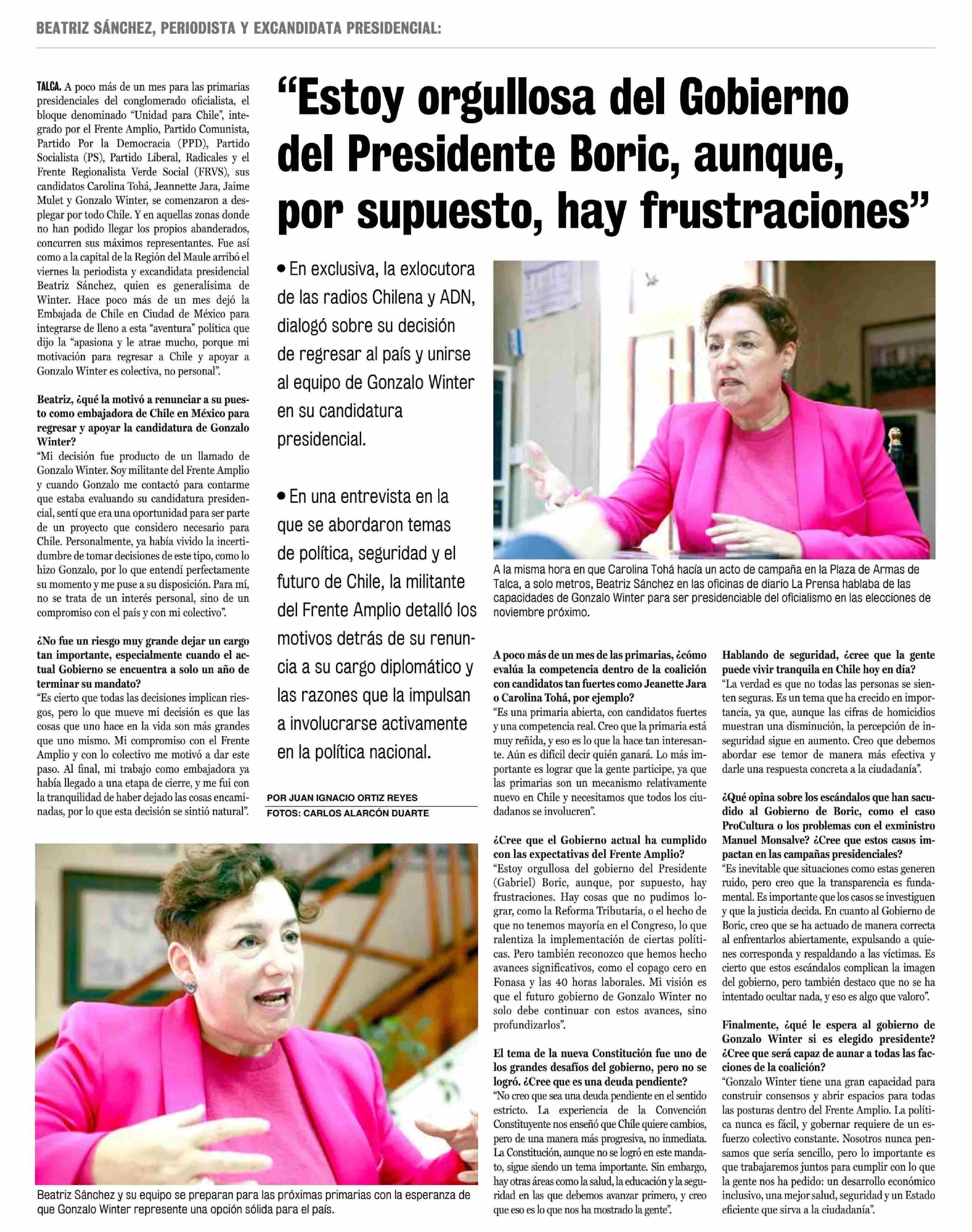 “Estoy orgullosa del Gobierno del Presidente Boric, aunque, por supuesto, hay frustraciones” 18-05-2025 La Prensa de Curicó |