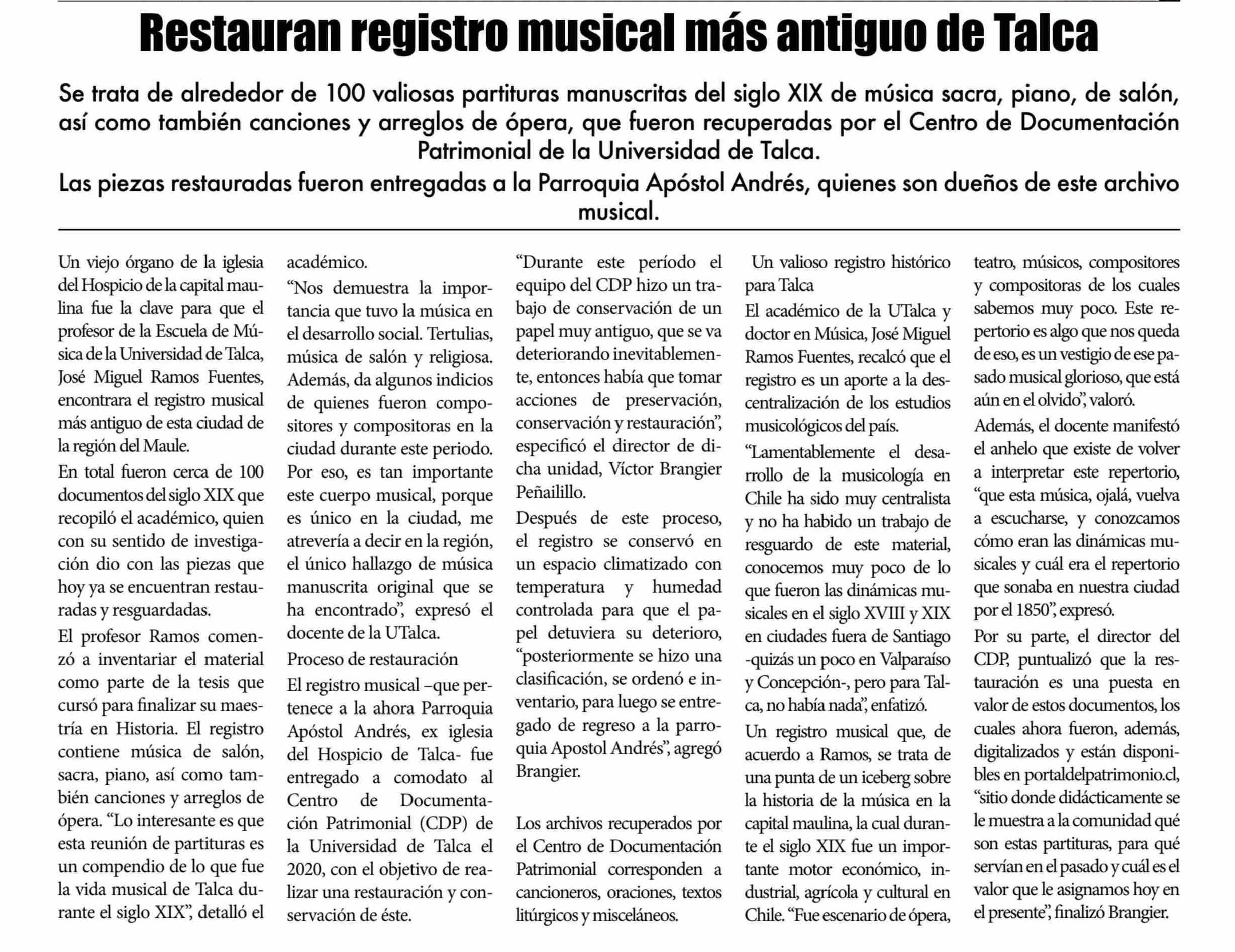 Restauran registro musical más antiguo de Talca 02-05-2024 El Lector |